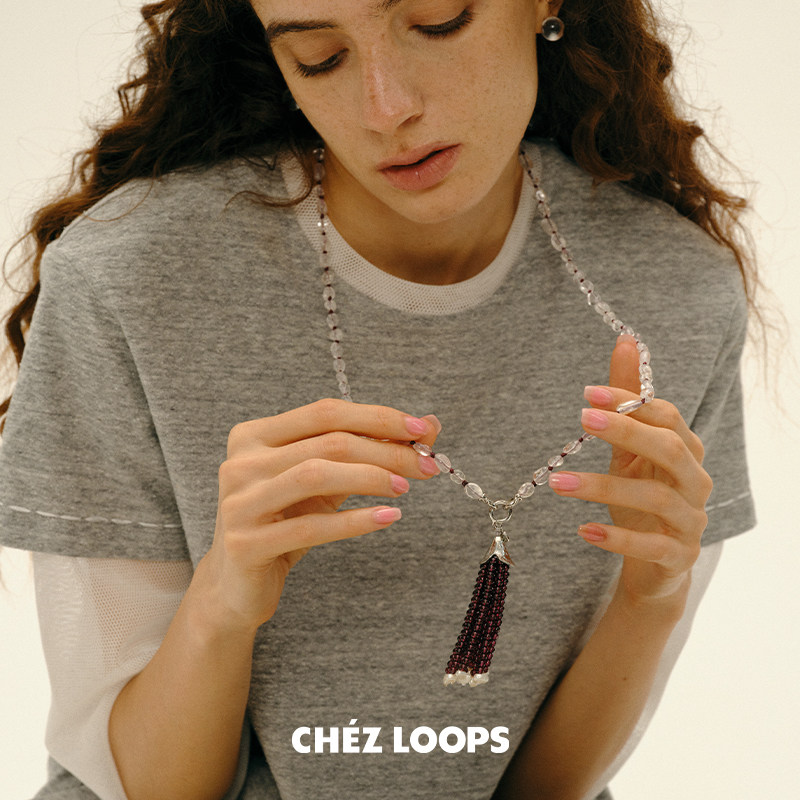 CHEZ LOOPS松果黑玛瑙石榴珍珠流苏项链原创设计白水晶链镀金长款
