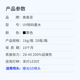 为您提供商品防伪码 奥美亚适用工业喷码 专用UV墨水理光G5喷头喷码 机UV墨水工业墨水二维码 油墨 高黑度精度固化工业级UV喷码的详细介绍,