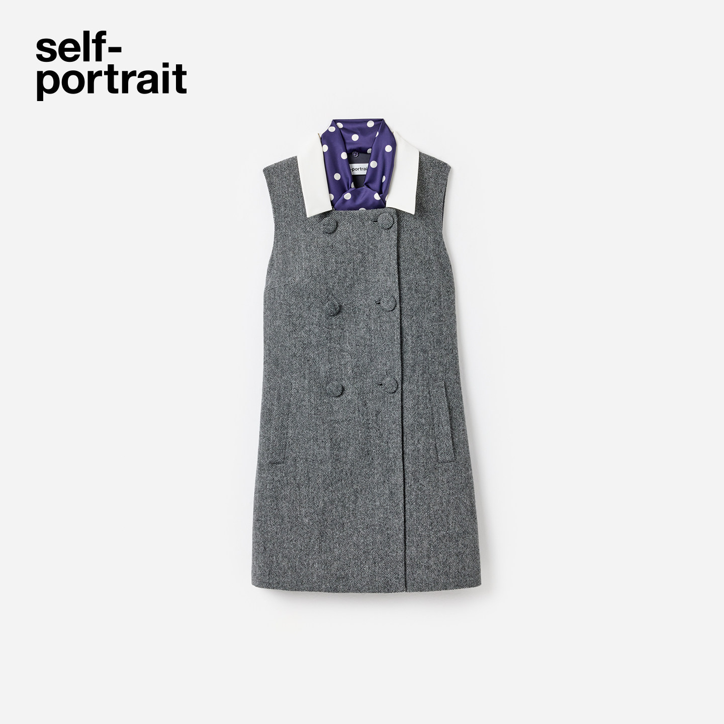 2026早春新款 灰混色重要场合可拆丝巾人字纹连衣裙 portrait self由
