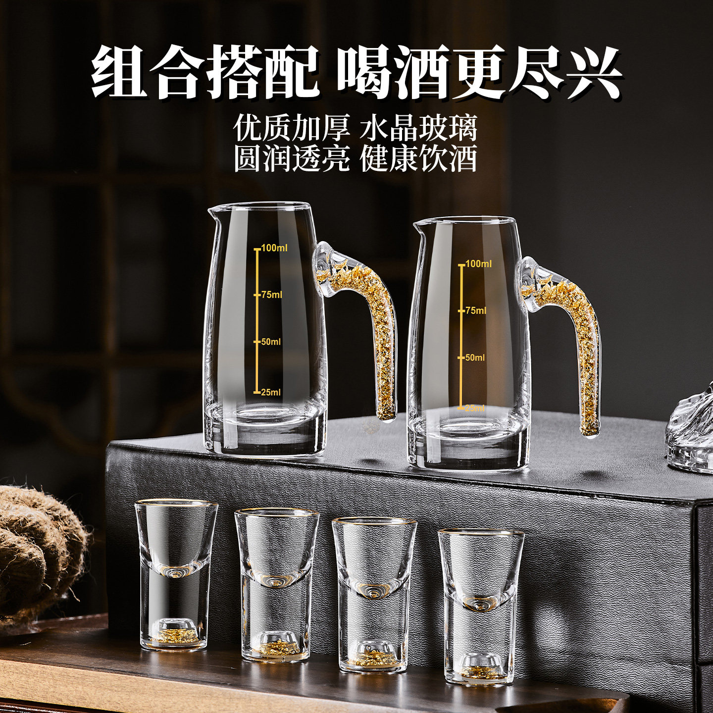 为您提供商品二两分酒器带刻度高级感酒具送礼礼盒 高档轻奢水晶玻璃白酒杯套装的详细介绍,