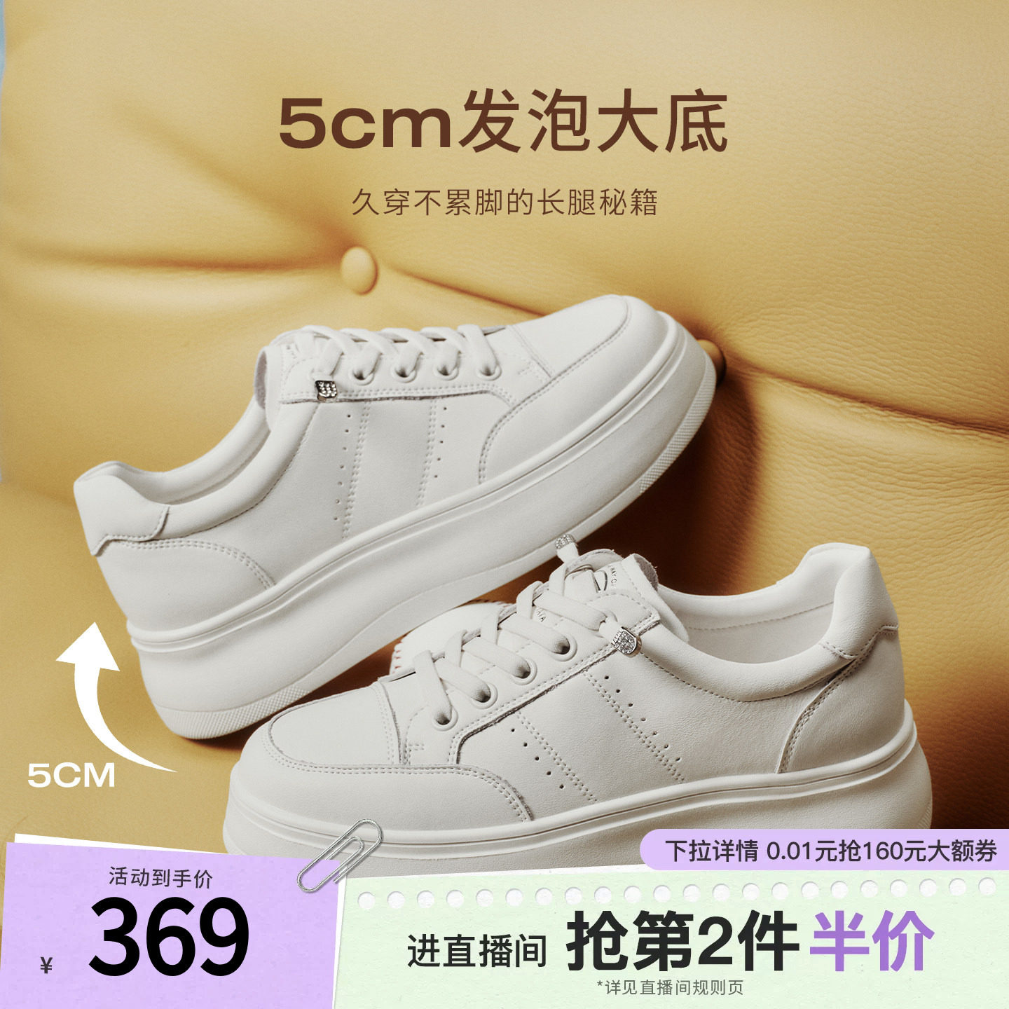 子厚底增高板鞋 TATA他她白月光女鞋 春季 小白鞋 CLK01AM6 百搭休闲鞋由