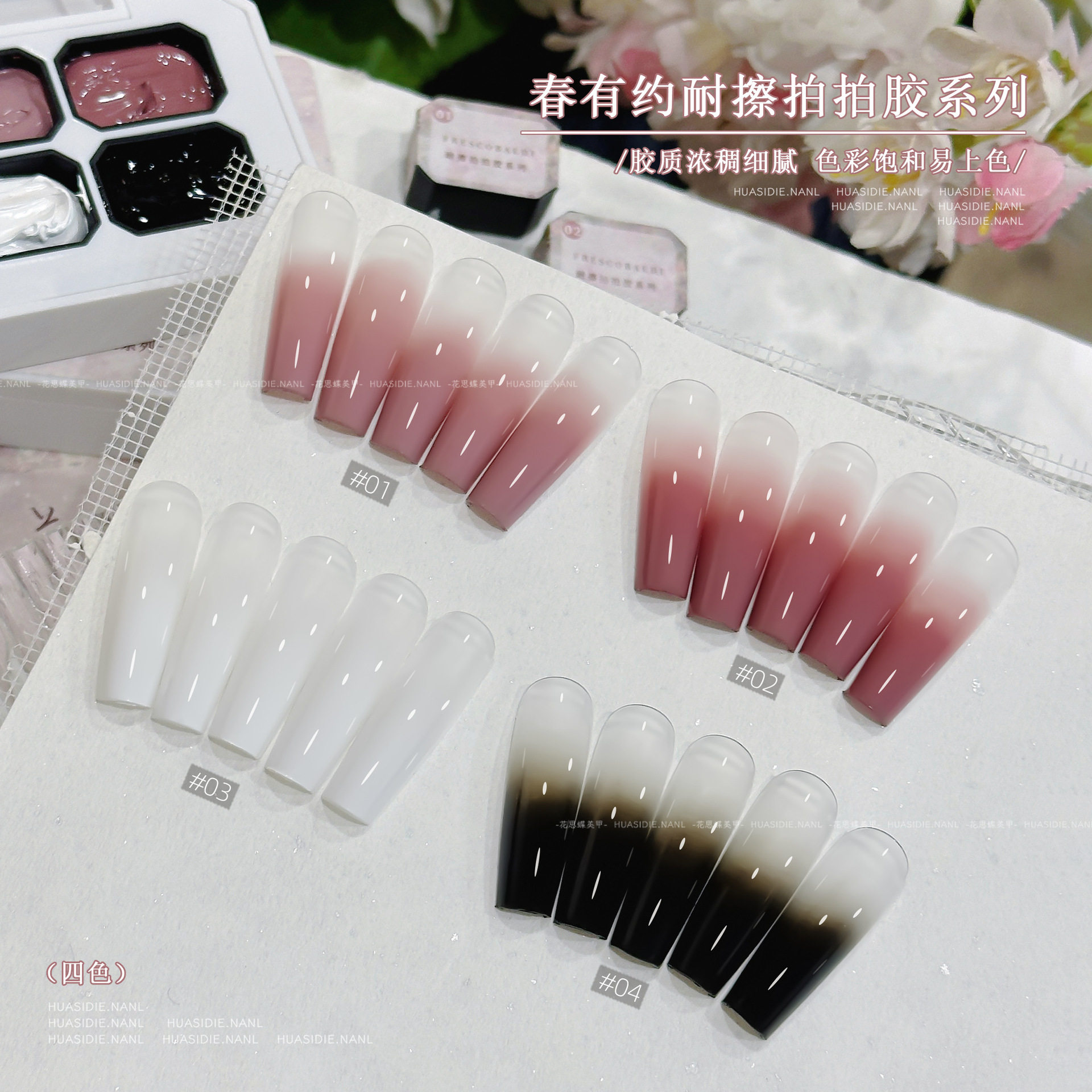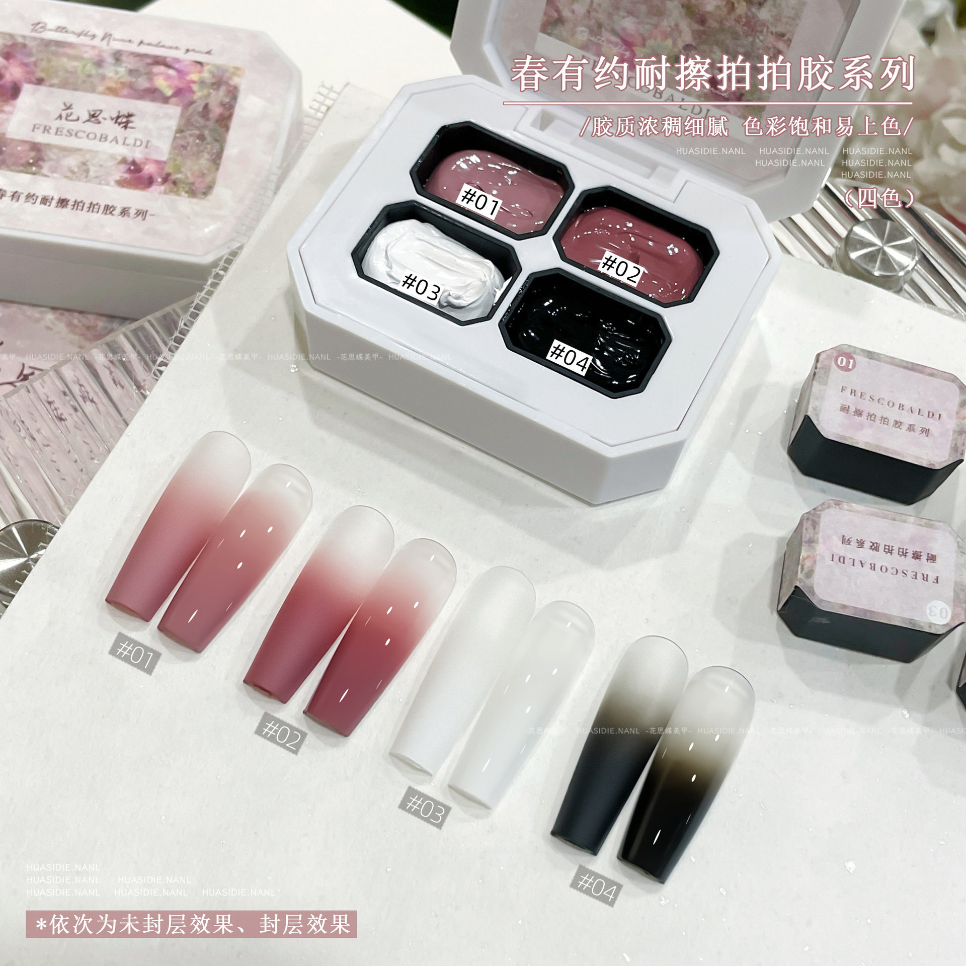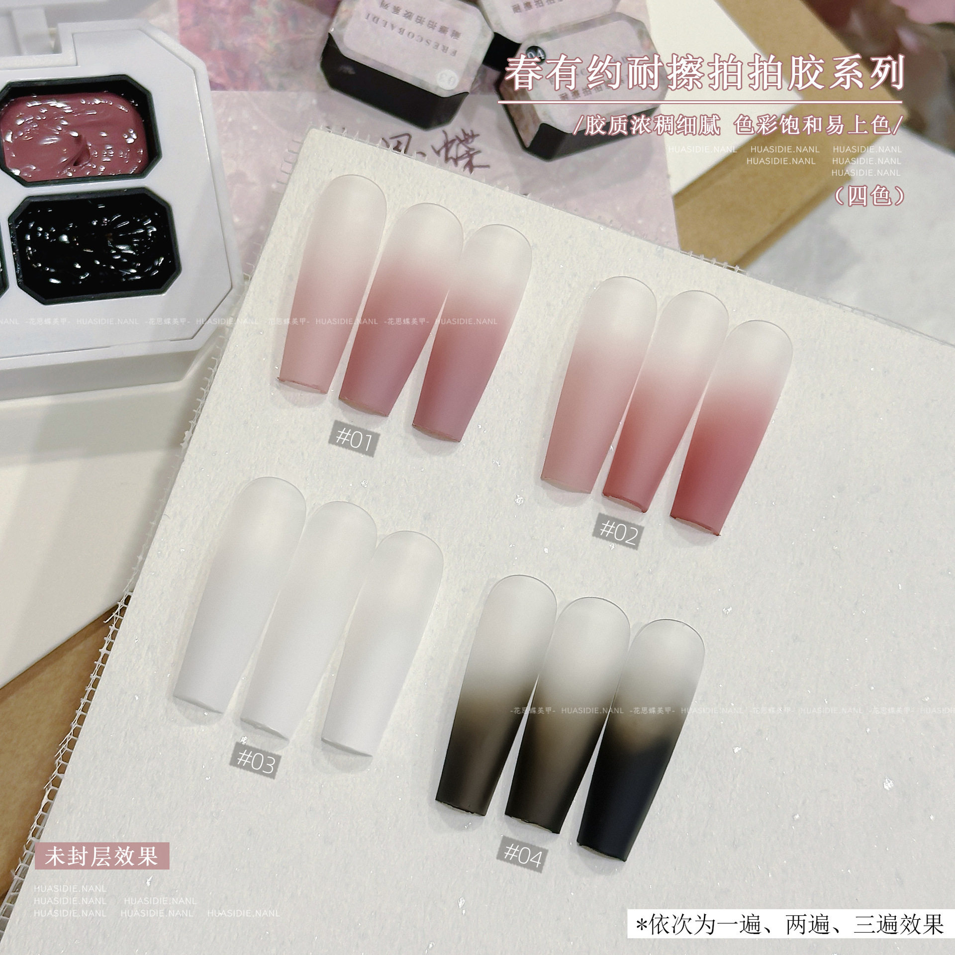 为您提供商品小颖美甲 mini四宫格免洗可彩绘拍拍光疗胶 春有约四色耐擦拍拍胶的详细介绍,