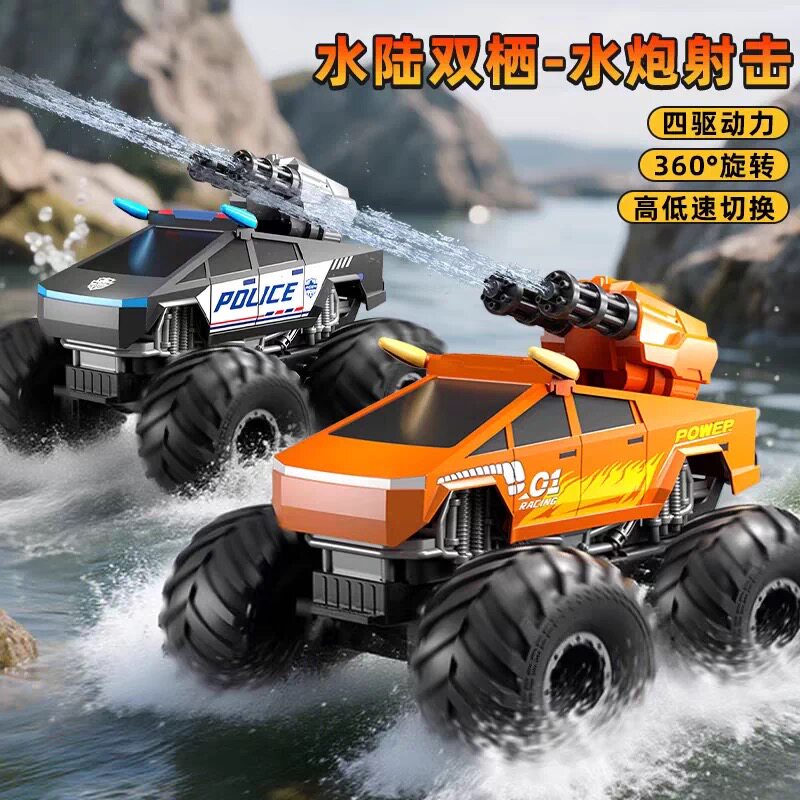 遥控水炮喷水皮卡越野车儿童玩具水陆两栖电动遥控船类男孩礼物