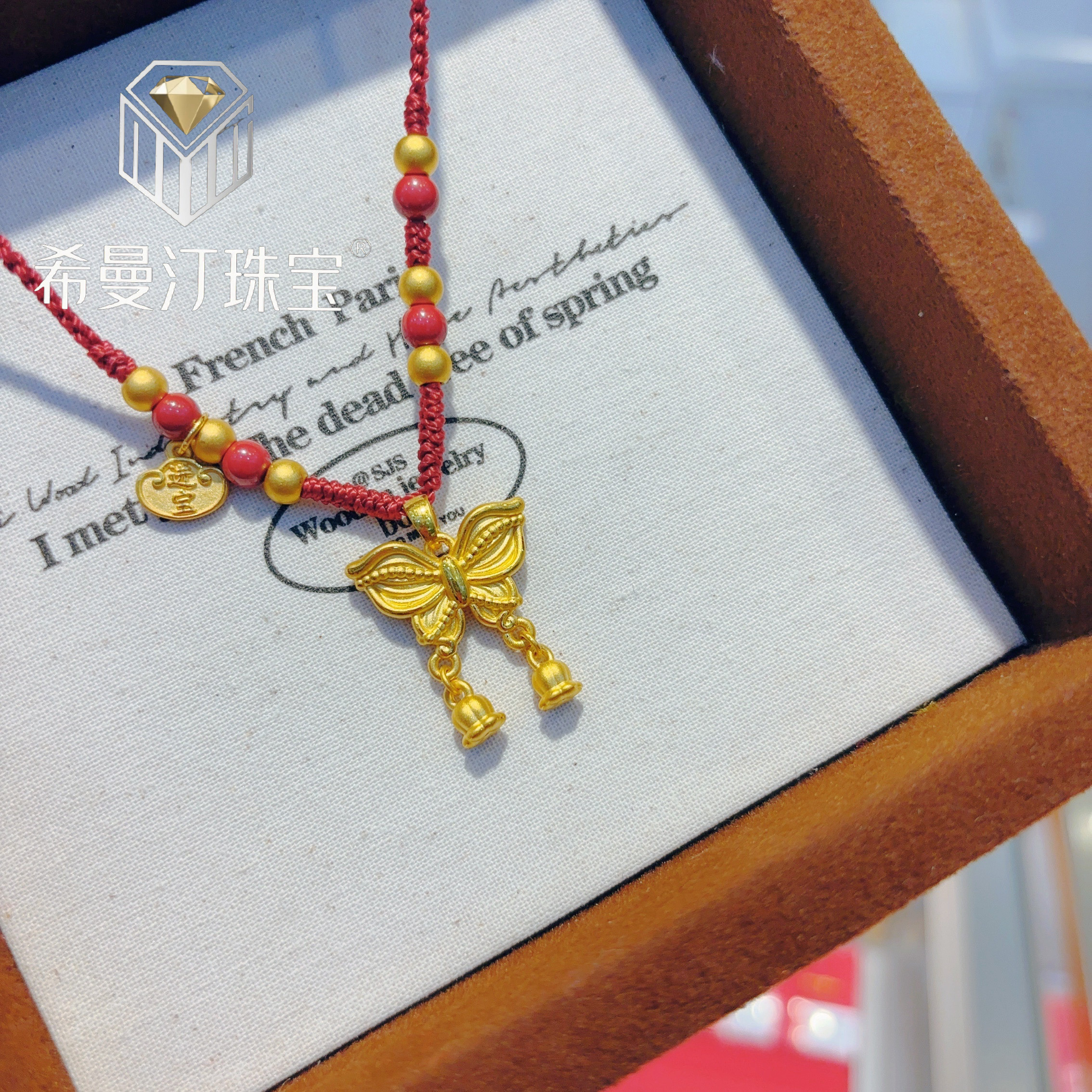 为您提供商品希曼汀黄金蝴蝶吊坠女999足金在逃公主编绳项链生日礼物送女友的详细介绍,