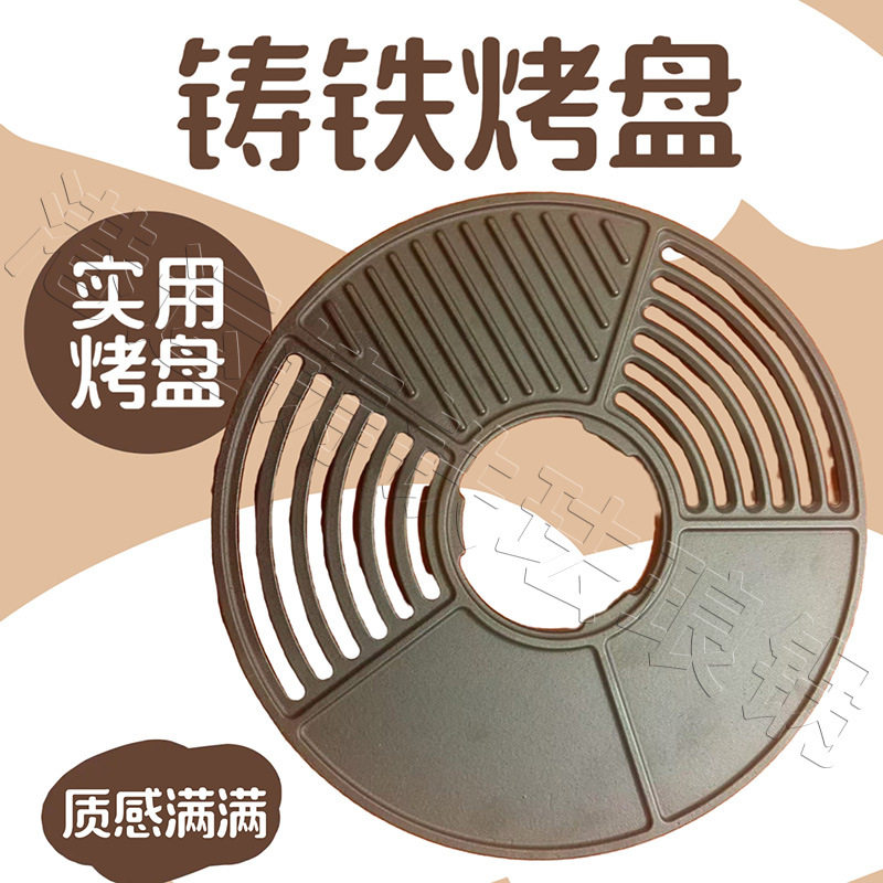 铸铁户外烤盘韩式 炉烧烤盘铁板烤肉锅家用无涂层煎盘 烤肉盘卡式