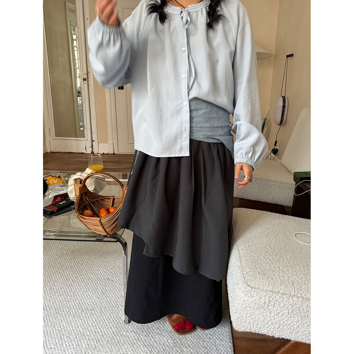 进口醋酸缎面丝滑垂坠显瘦松紧腰A字中长款 半身裙 memory commuse