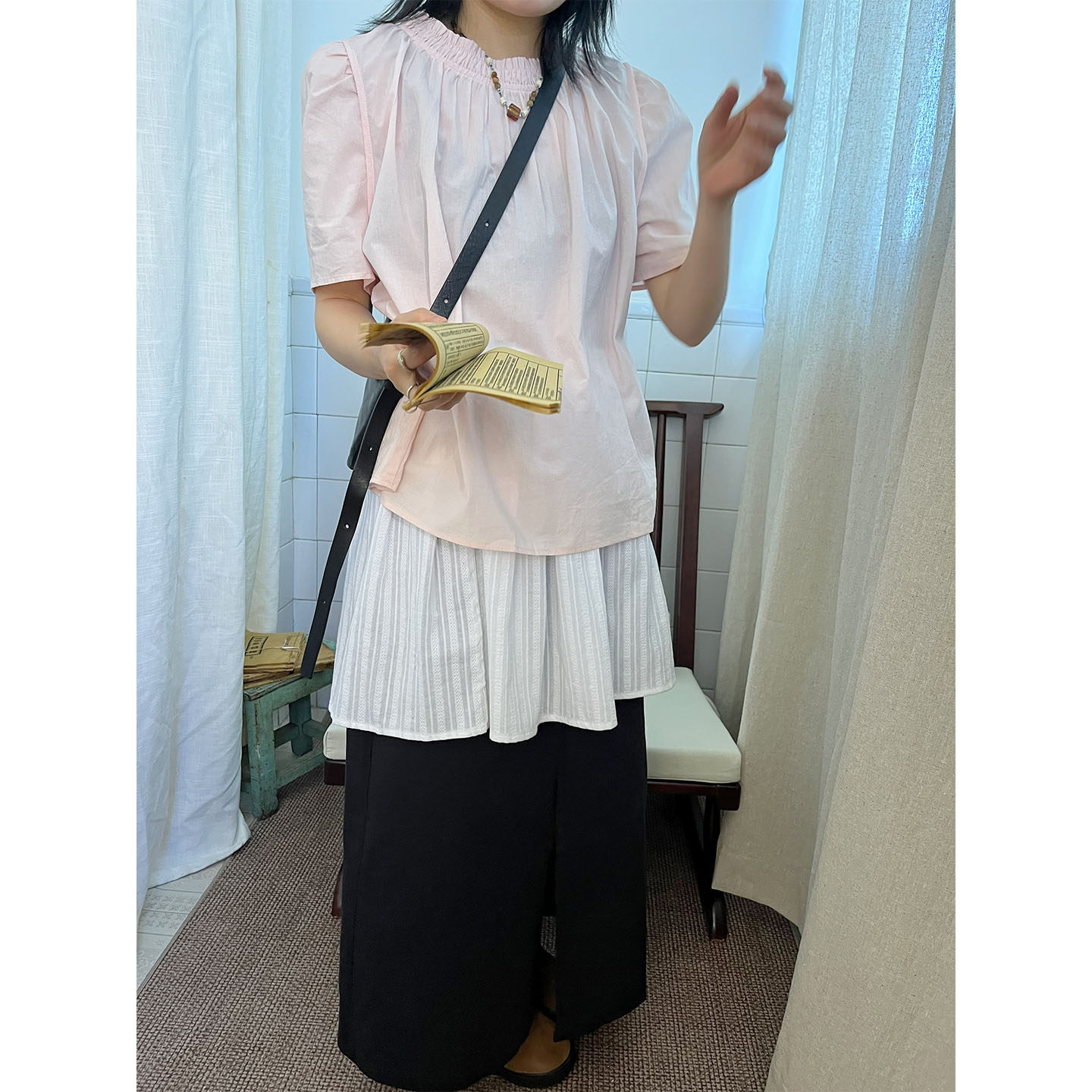 韩国小众设计蕾丝花边叠穿网纱裙帘氛围感纱裙系带围裙半身裙屁帘