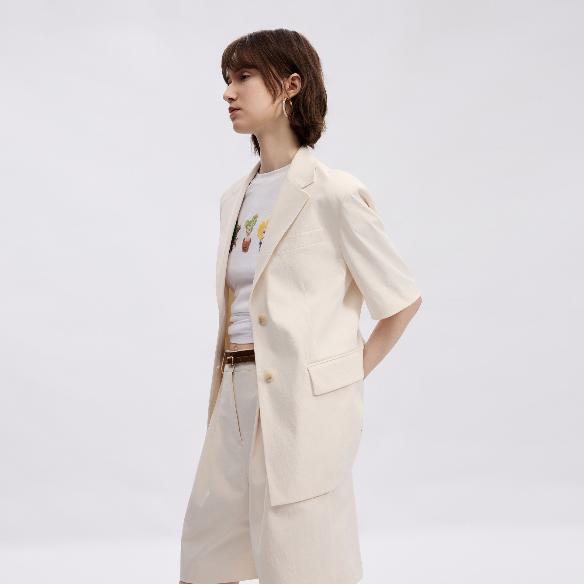 防晒高级感通勤西服2026年夏季 朗姿25法式 平驳领西服外套 裤 新款
