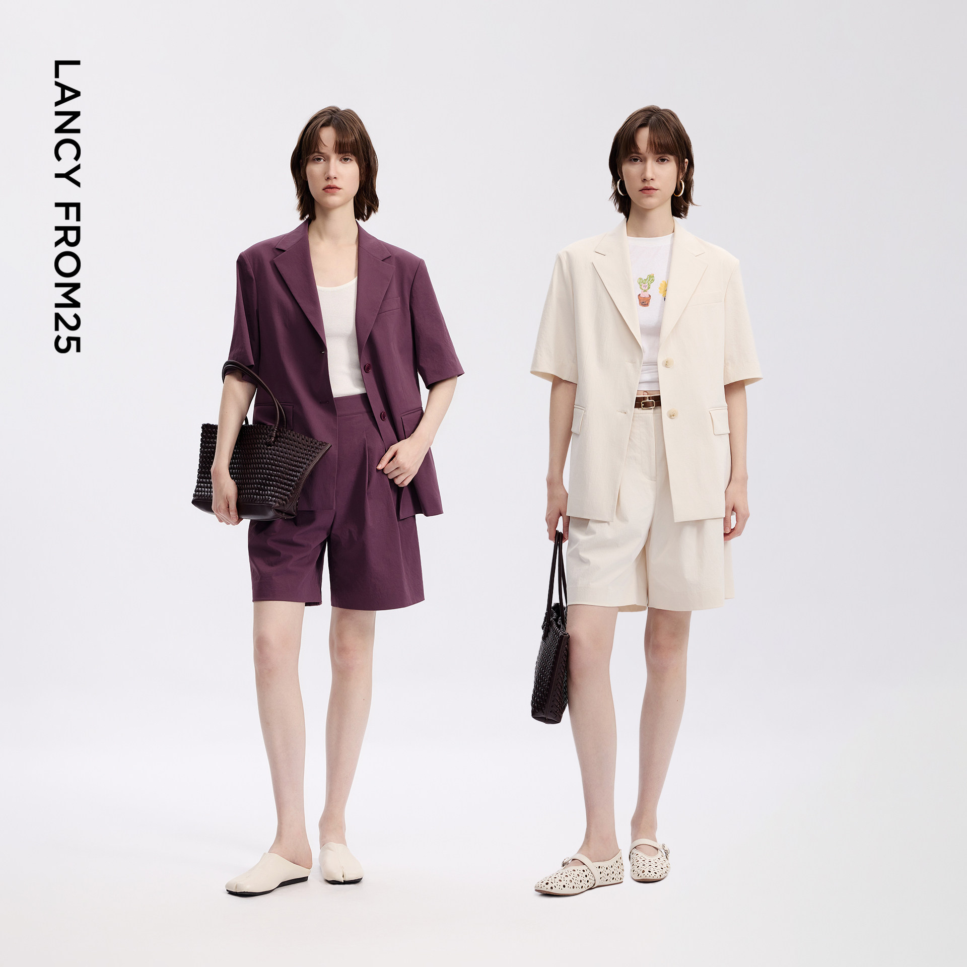 防晒高级感通勤西服2026年夏季 朗姿25法式 平驳领西服外套 裤 新款由