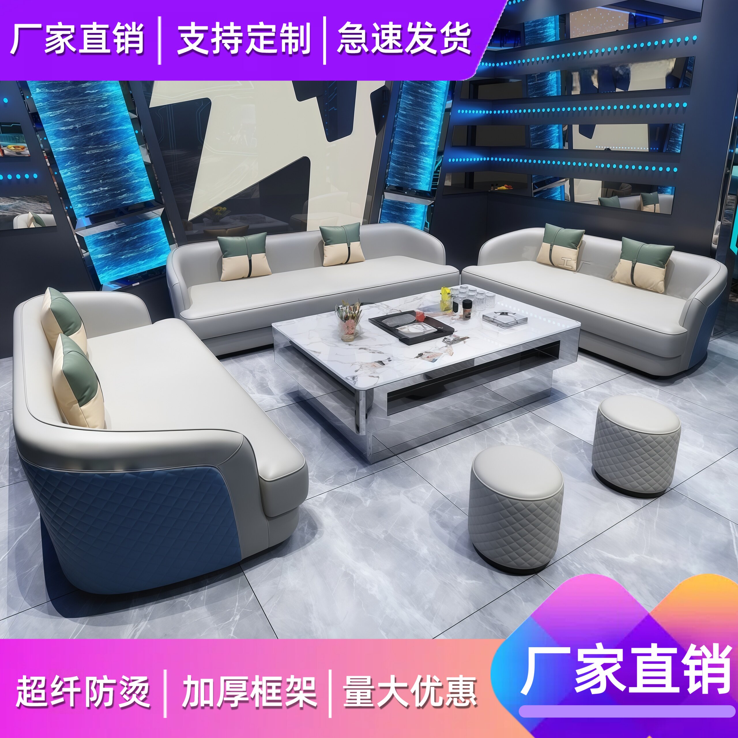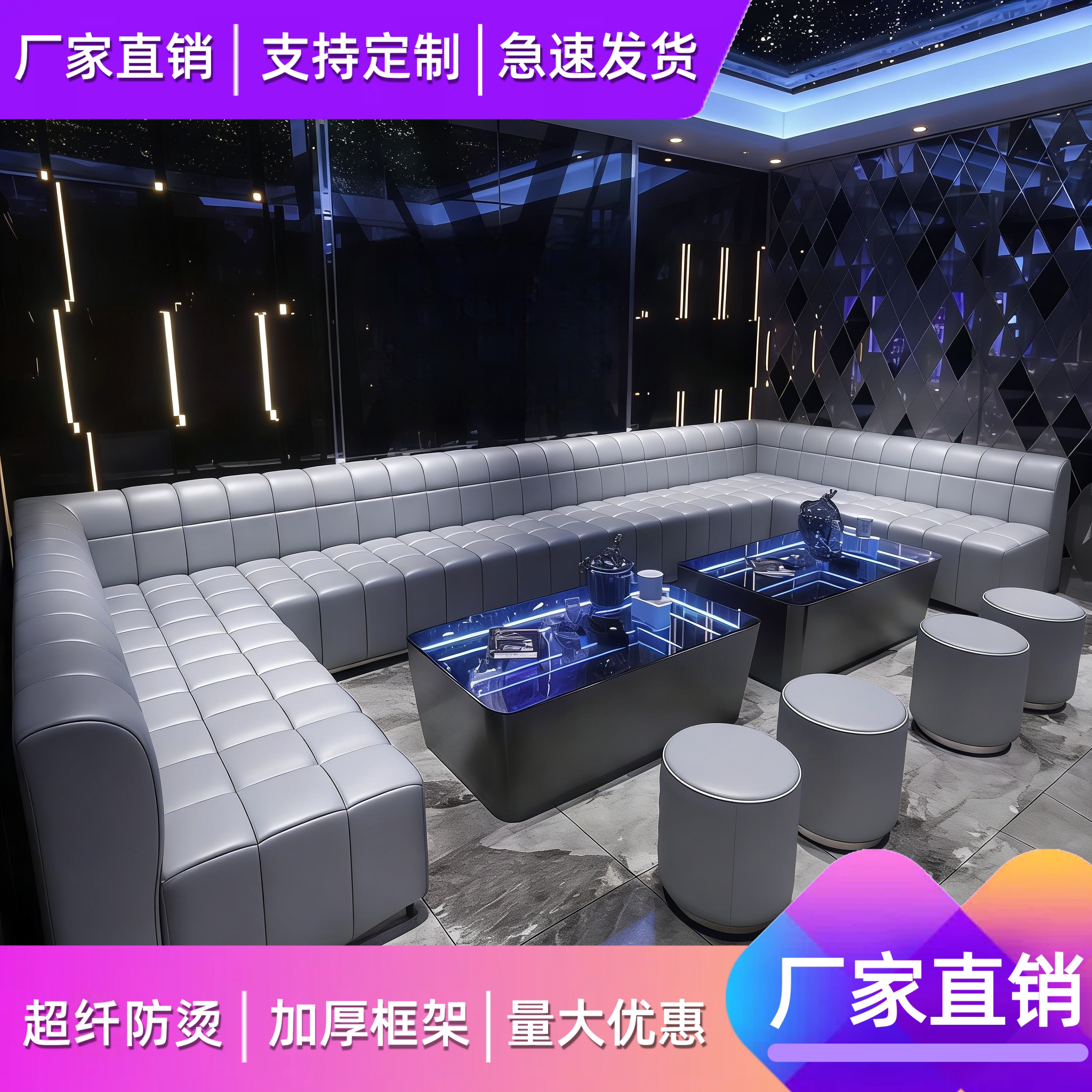 KTV沙发包厢酒吧台球厅卡座网红娱乐会所u型L型茶几组合定制 新款
