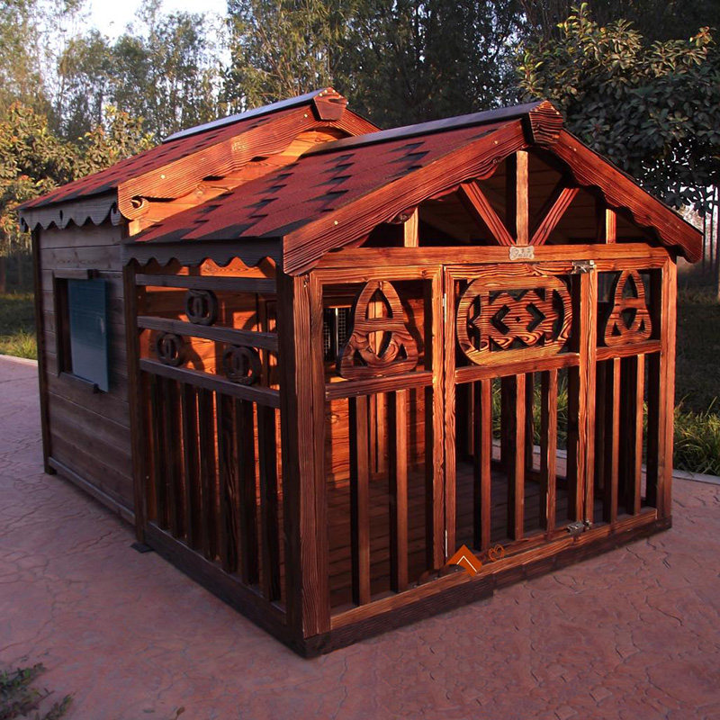 奥果狗屋户外网红中大型犬金毛狗房子泰迪别墅碳化木宠物防腐狗窝由