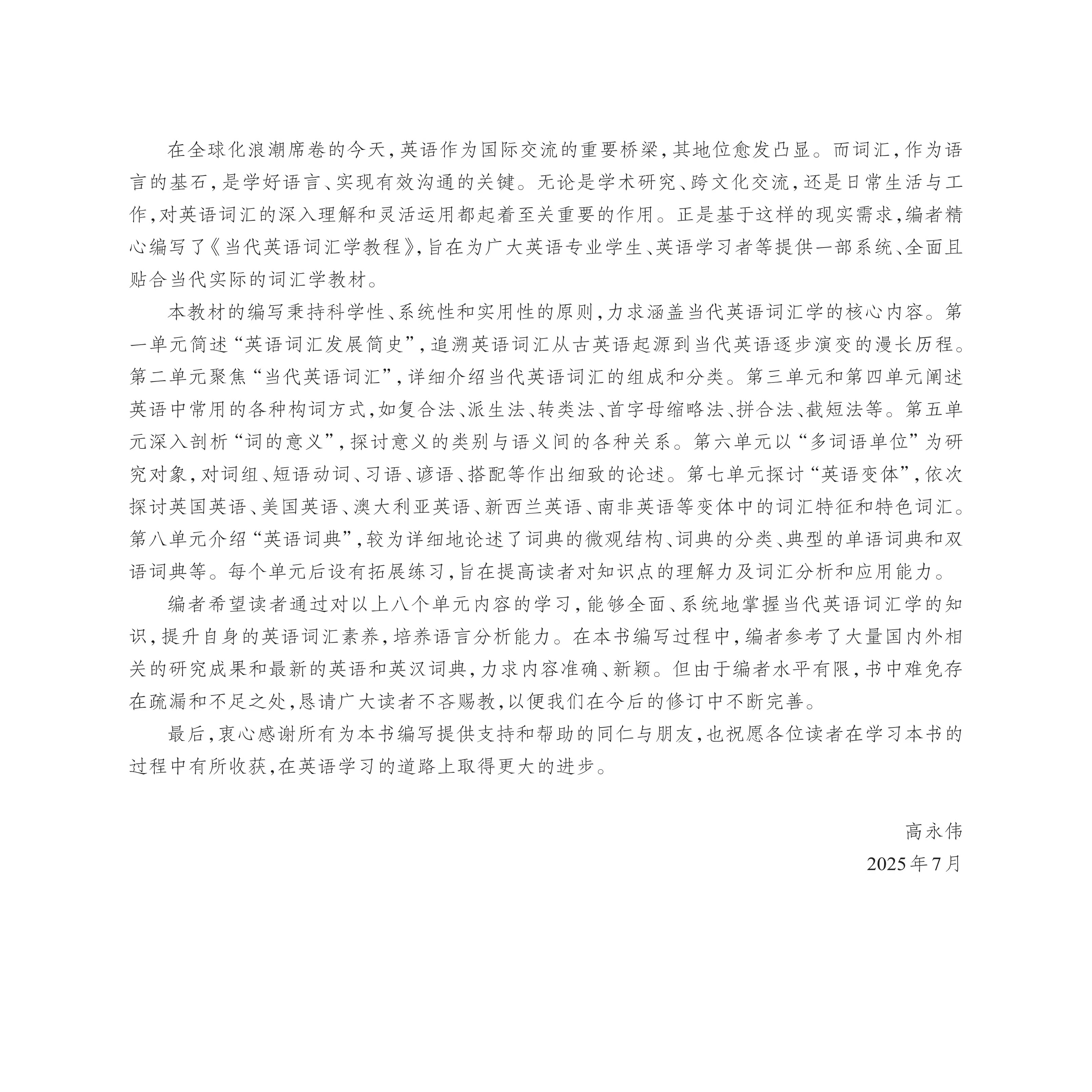 当代英语词汇学教程 复旦大学出版 社 9787309183160 高永伟