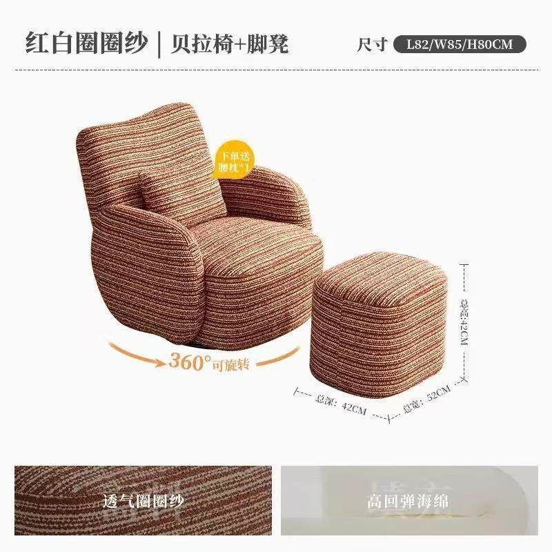 贝拉单居人沙发闲椅家博主推荐 复古614客厅阳台法可旋转休布艺 式