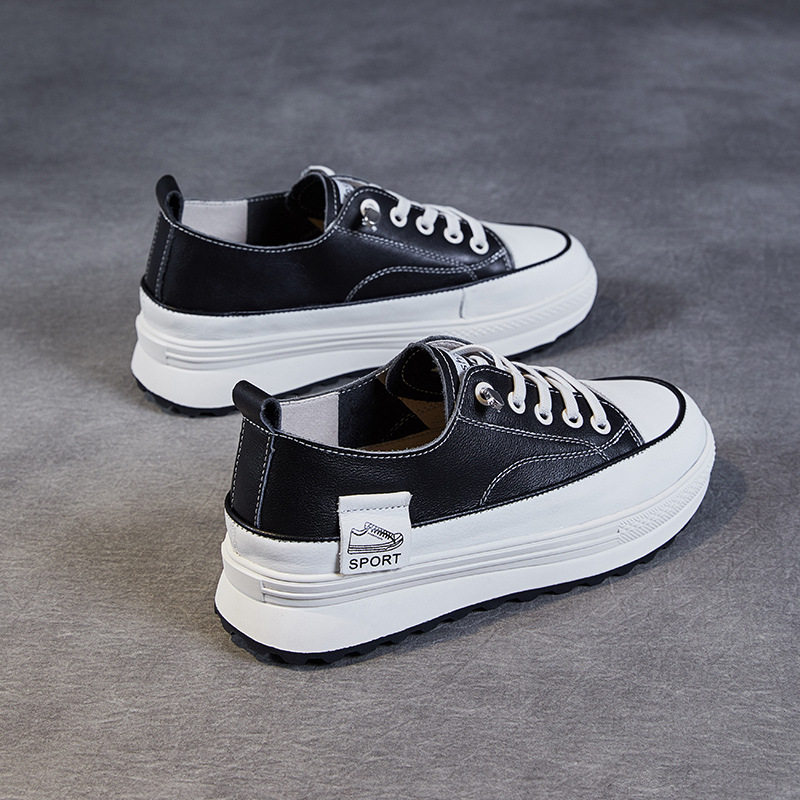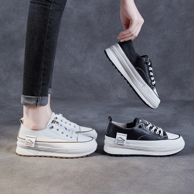 真皮小白鞋 春秋爆款 厚底松糕底饼干鞋 运动休闲板鞋 女2026新款