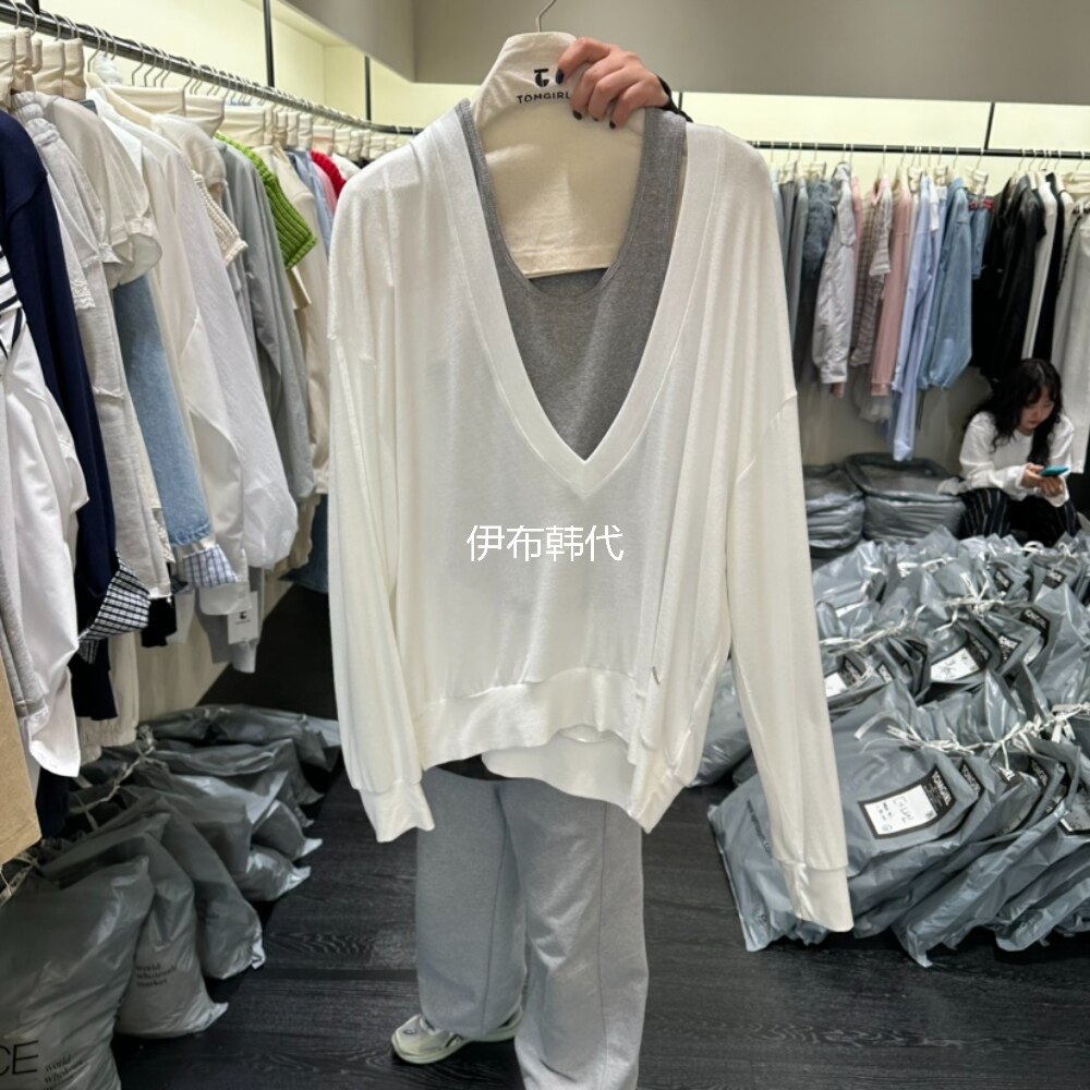 26春款 V领层叠背心两件套宽松T恤 代购 TOMGIRL韩国东大门正品