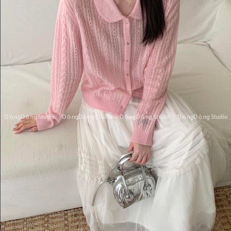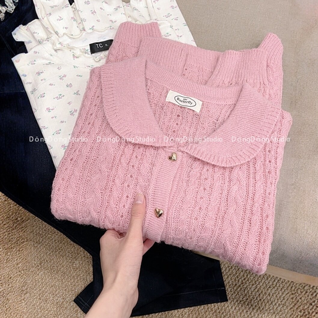 花边针织开衫 外套上衣 甜美拼接娃娃毛衣秋冬新款 蕾丝温柔针织衫