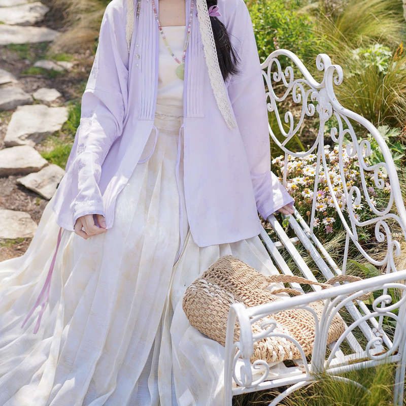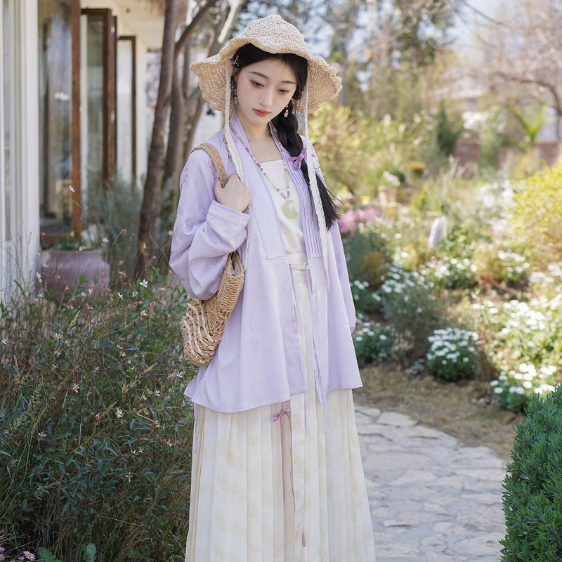 汉服日常款 汉尚华莲明制交领衫 天丝 堇色春日 春夏女 百迭裙套装