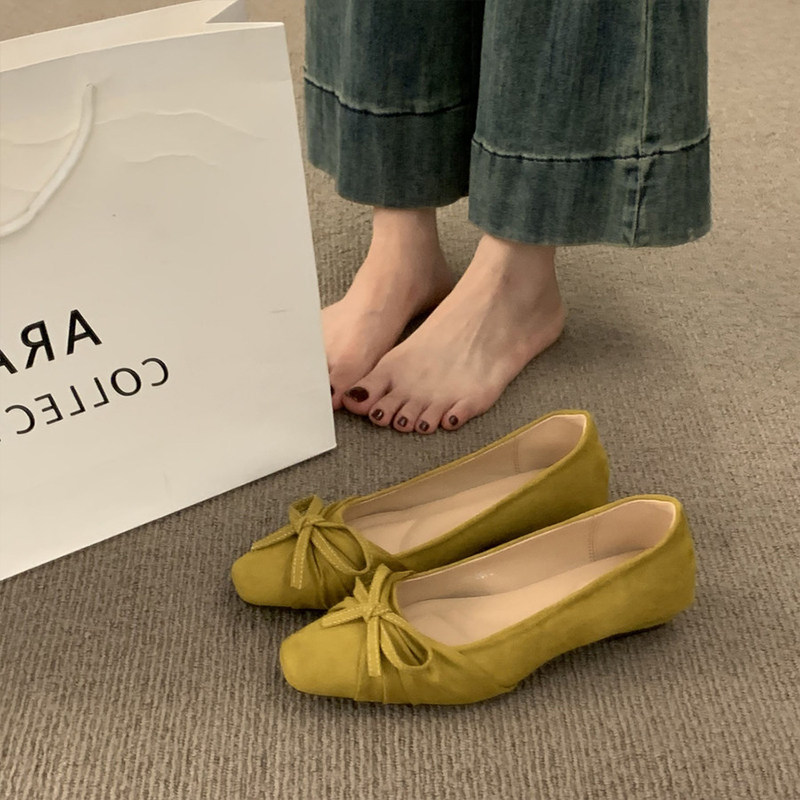 低跟工作鞋 羊皮版 黑色通勤 方头浅口单鞋 2026新款 法式 平底女鞋