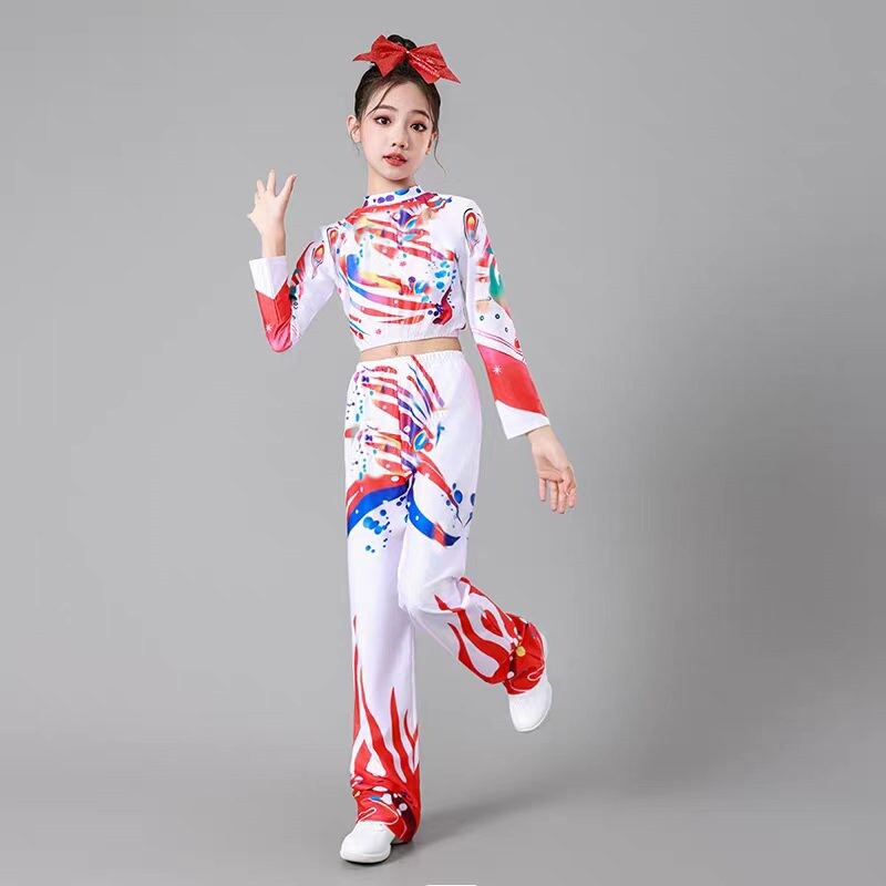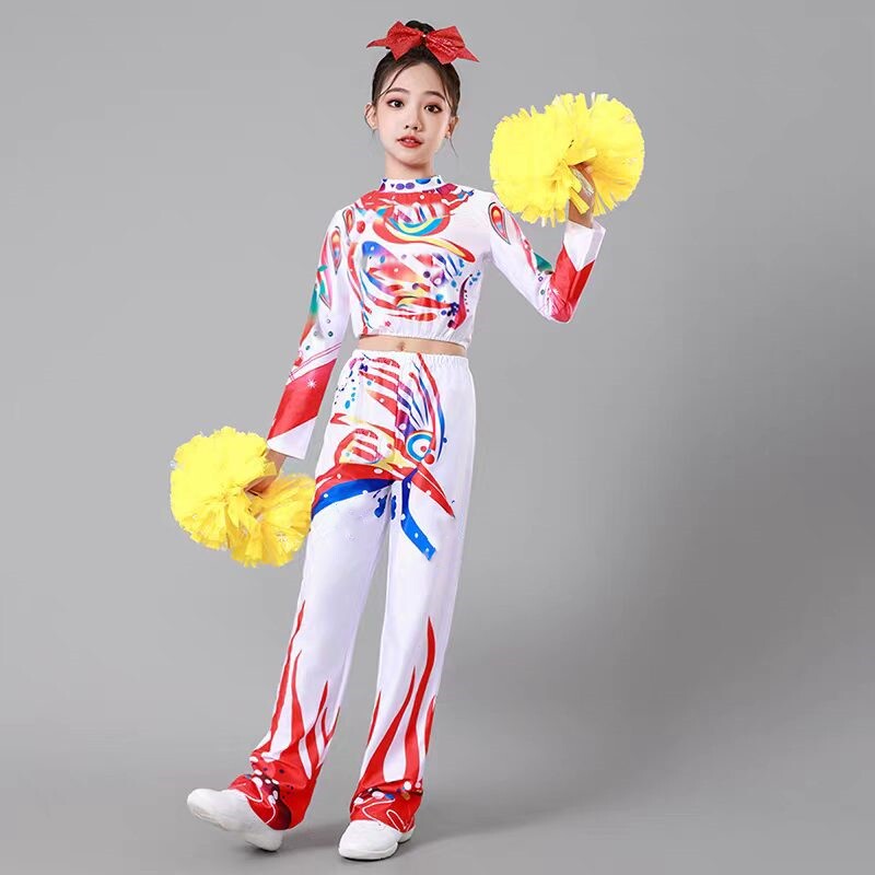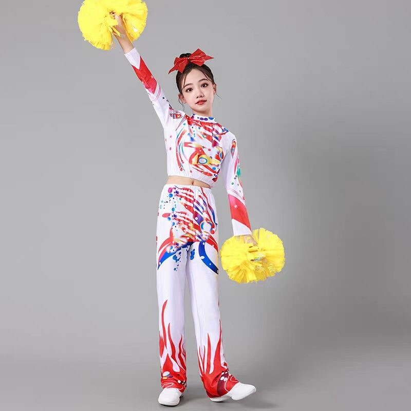啦啦操体操长裤 儿童啦啦队演服出服显瘦运动会团体比赛健美操套装