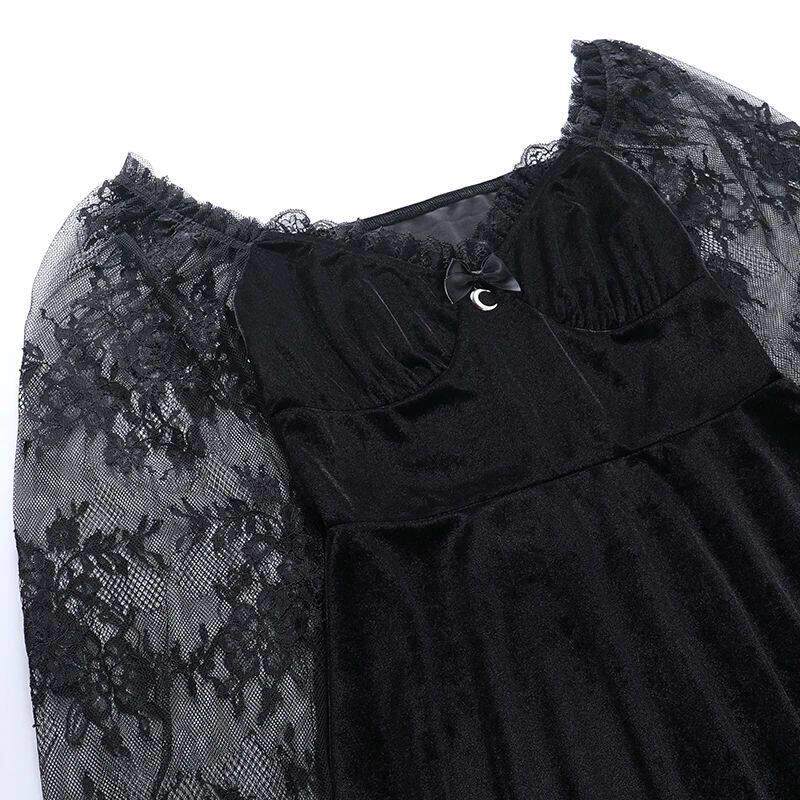 Gothic girlGrunge Dress Black Lace Mini High Waist Trim