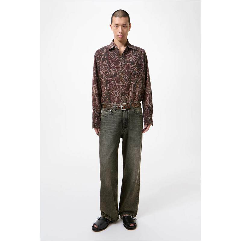 男宽松直筒cleanfit简约闪电纹长裤 复古水洗潮牌牛仔裤 AWRB美式