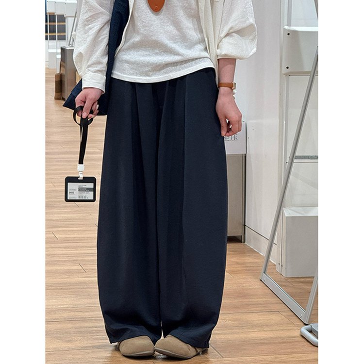 复古风高腰空气感山本裤 2026新款 藏青色显瘦宽松休闲直筒裤 女夏季