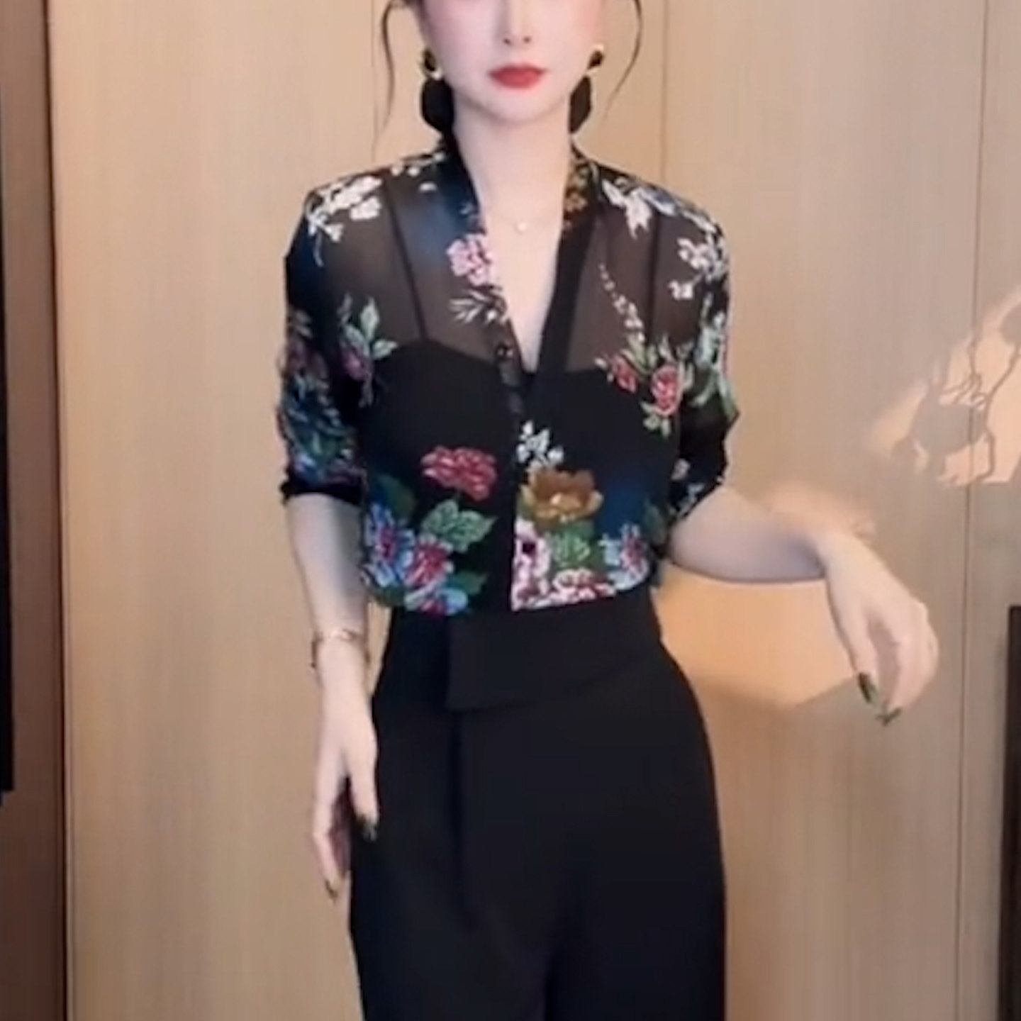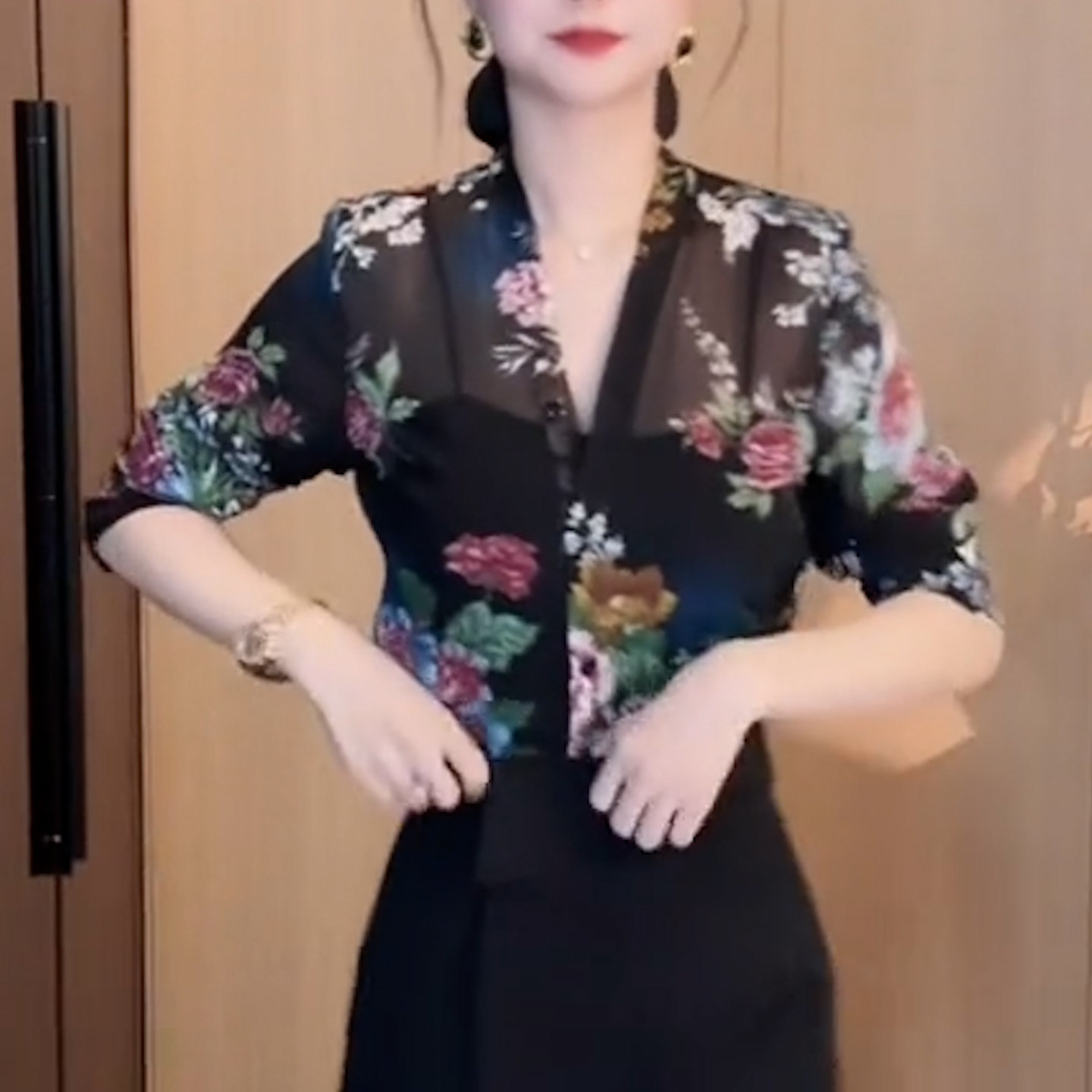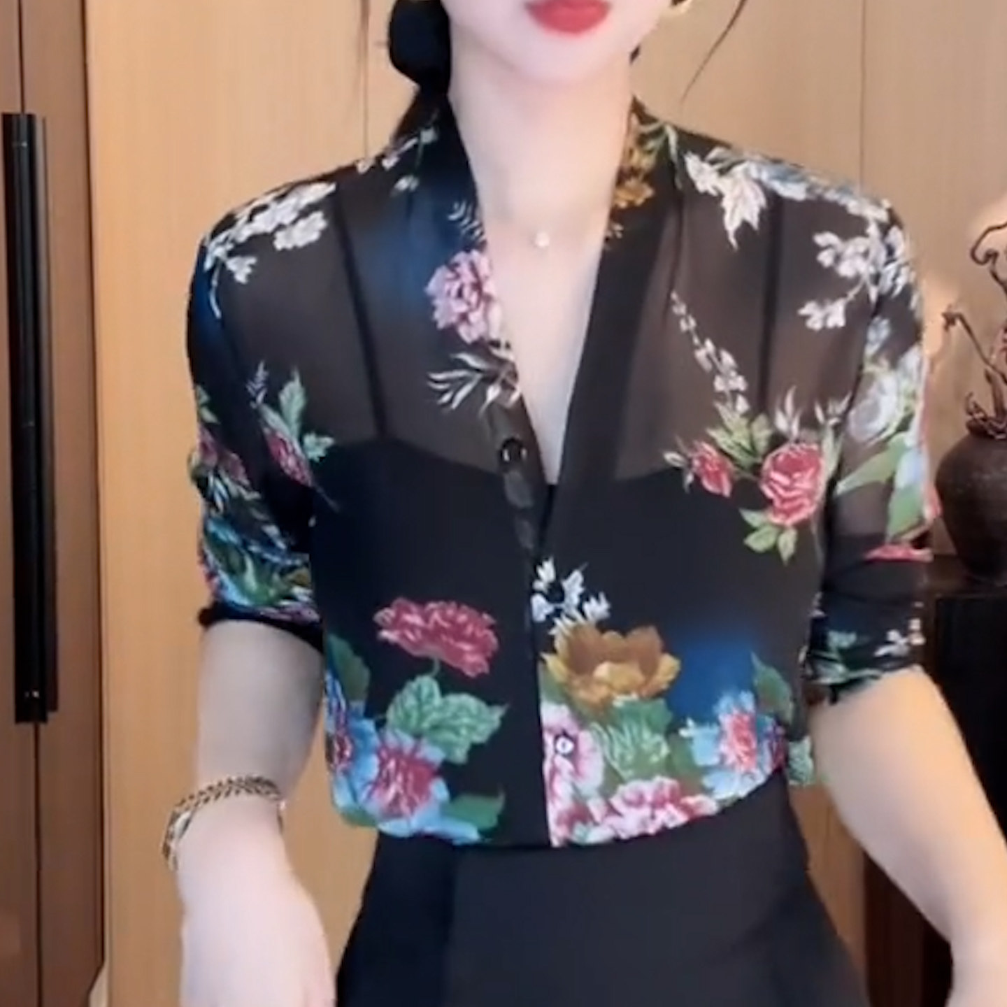 为您提供商品宽松显瘦气质高级感防晒衬衫 微透衬衣女 女长袖 黑色印花V领雪纺衫的详细介绍,