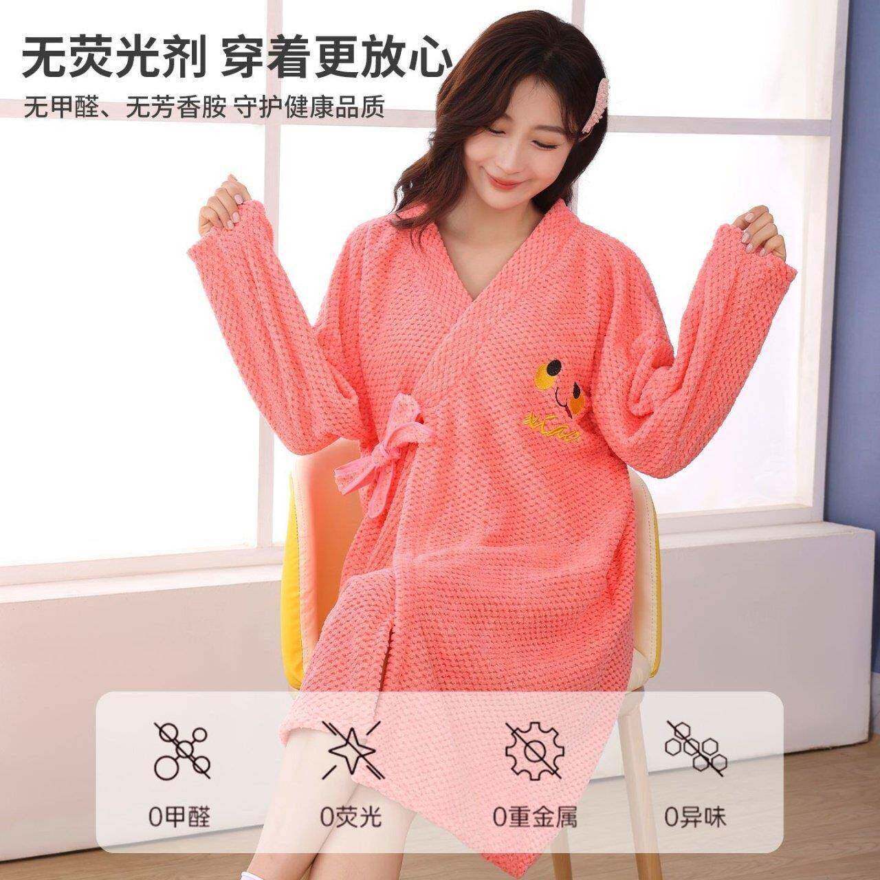 秋冬浴袍可穿浴巾女家用珊瑚绒吸水柔软速干浴裙洗澡睡袍睡衣连帽