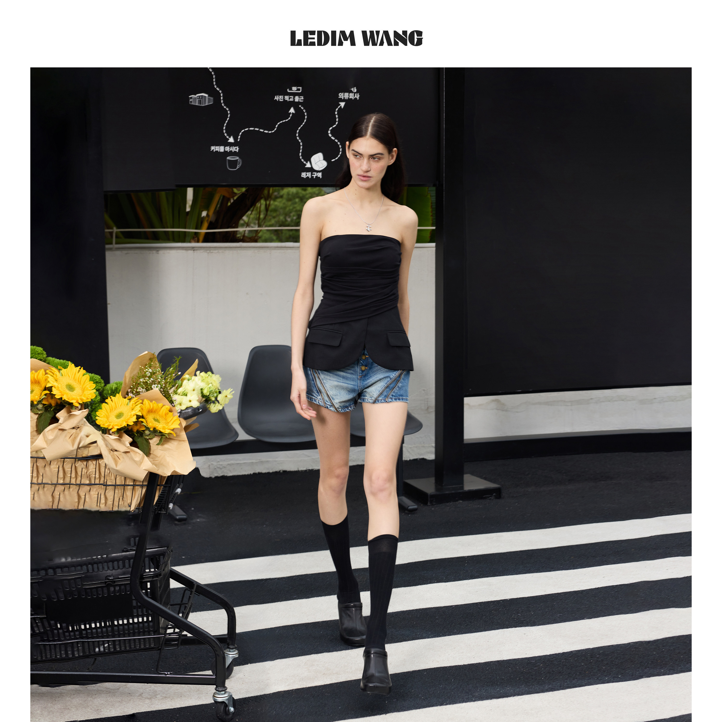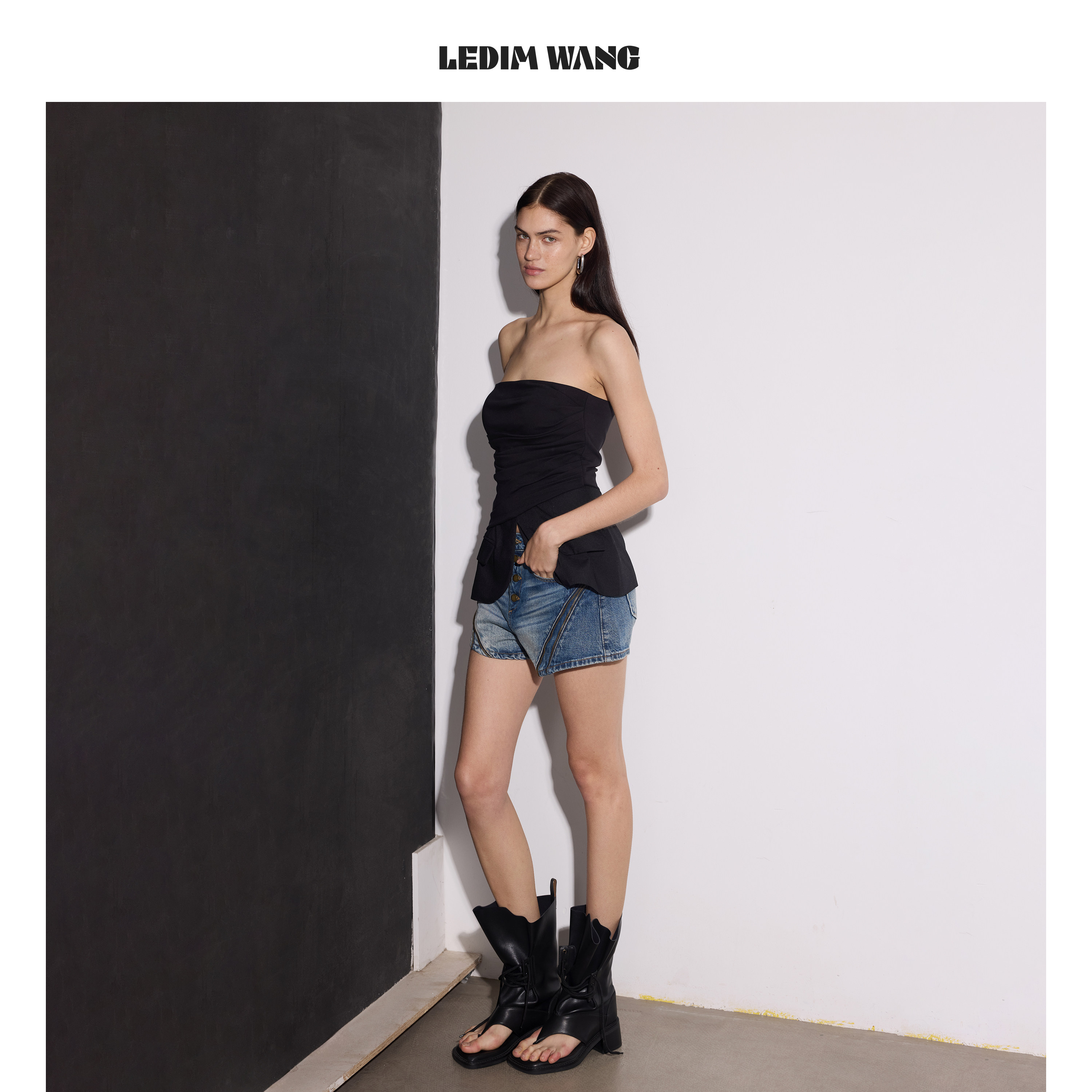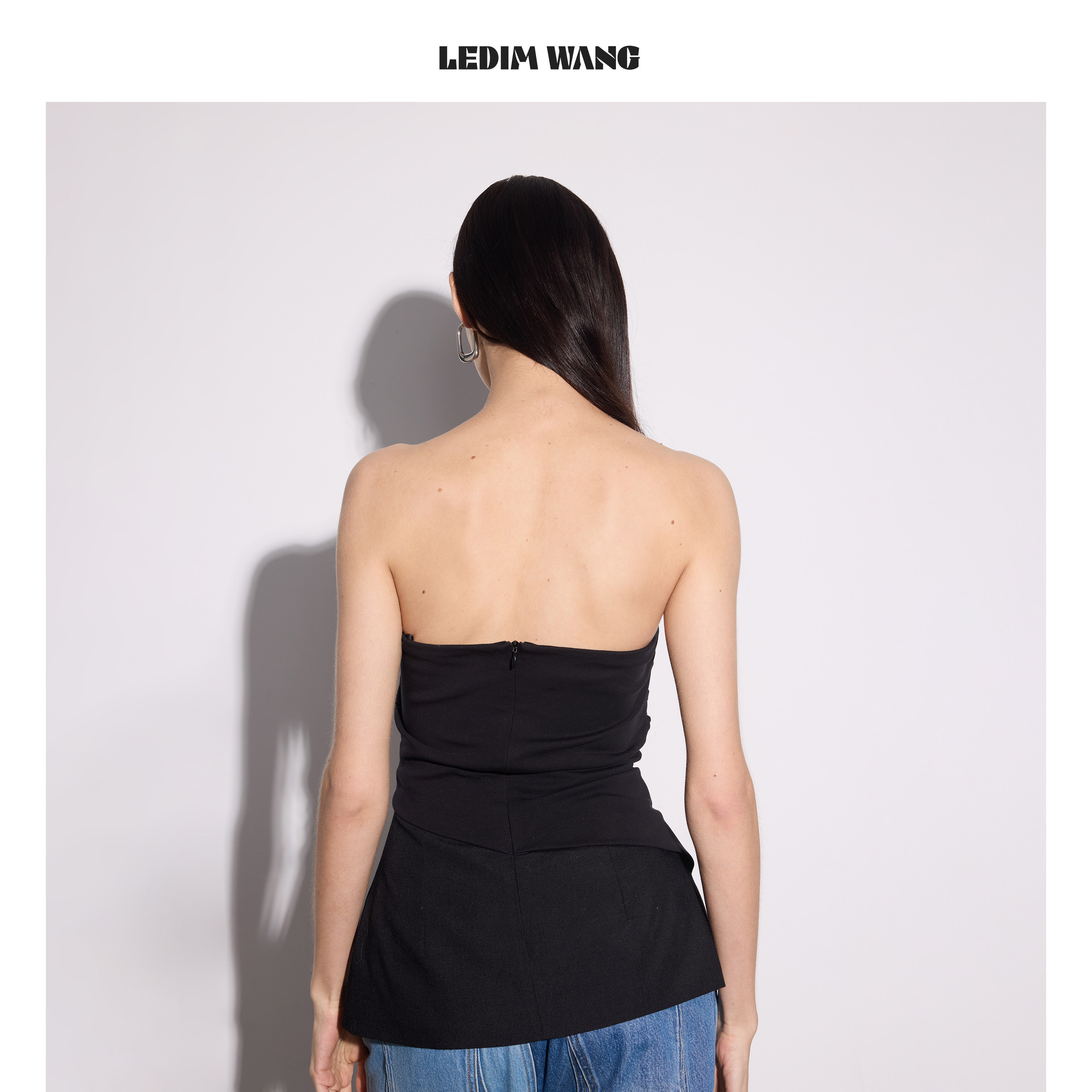 为您提供商品LEDIM WANG假两件解构收腰抹胸上衣女黑色弹力亲肤2026春夏新款的详细介绍,
