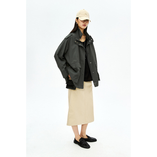 aaaaxbbb 小众时髦两色皮衣短款 夹克上衣垫肩外套女春款 胡桃手信