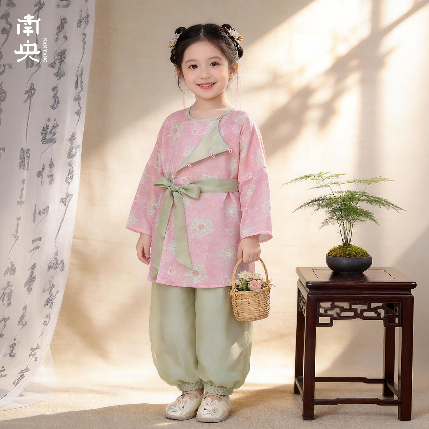 圆领袍小女孩新中式 南央童装 中国风女童汉服春秋季 儿童唐装 套装