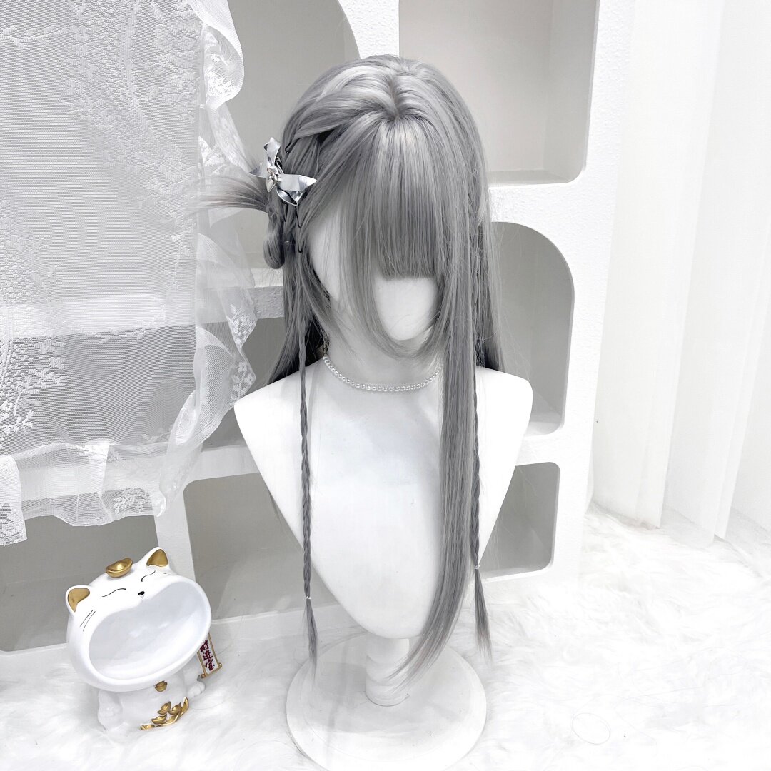 纤韵佳人假发女纯欲Lolita银灰色60cm长直发少萝jk自然刘海全头套