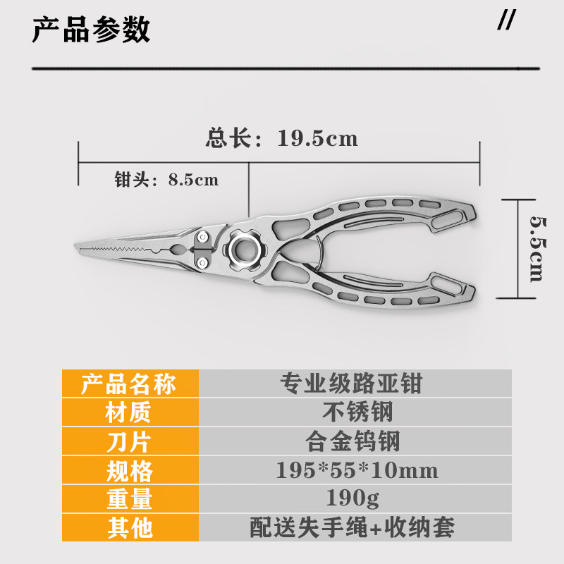 长嘴多功能路亚钳不锈钢鱼嘴钳夹锤钓鱼线剪刀控鱼器控鱼钳钳子