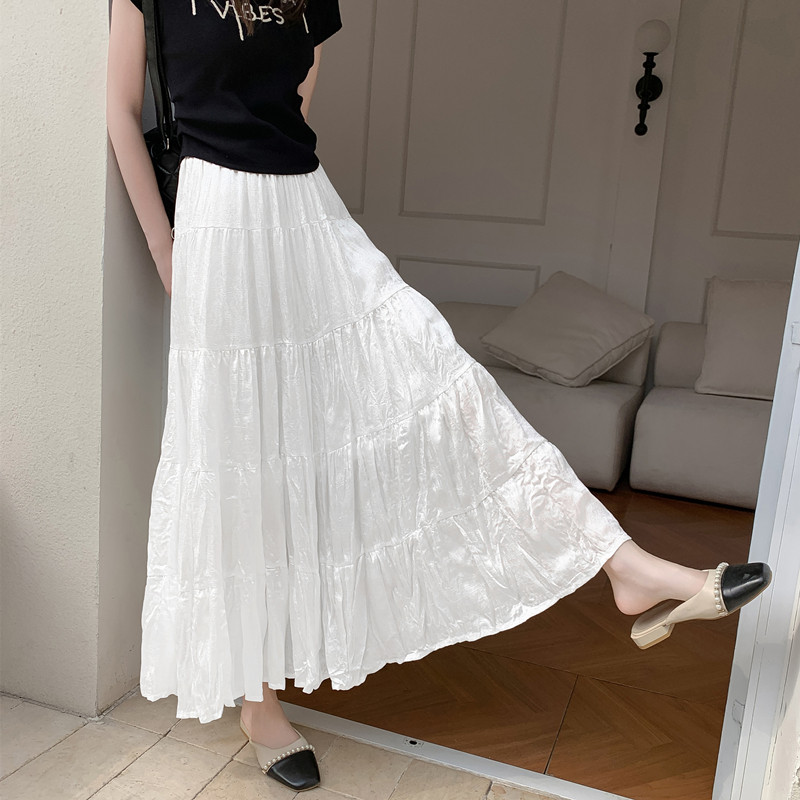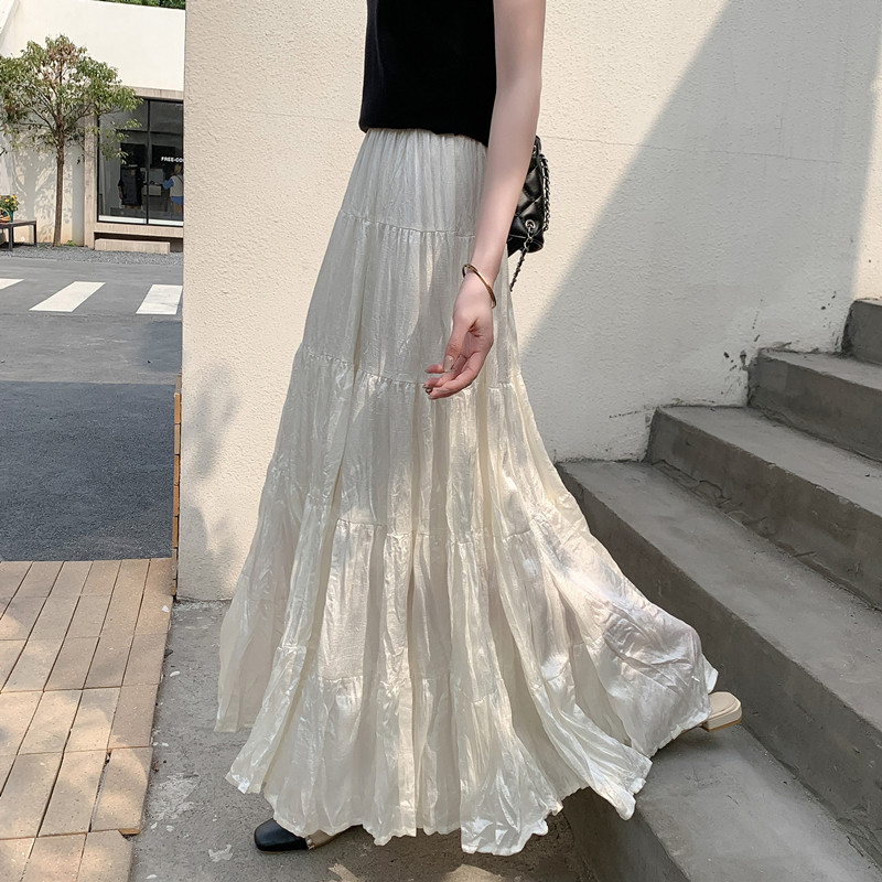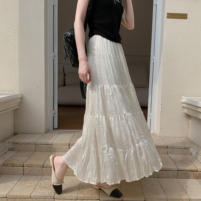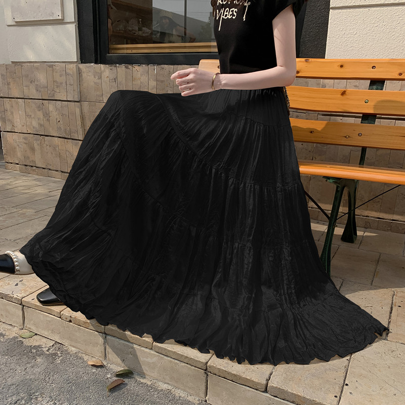 垂坠感褶皱长款 a字裙光泽感 夏季 蛋糕半身裙轻奢高级感女2026新款