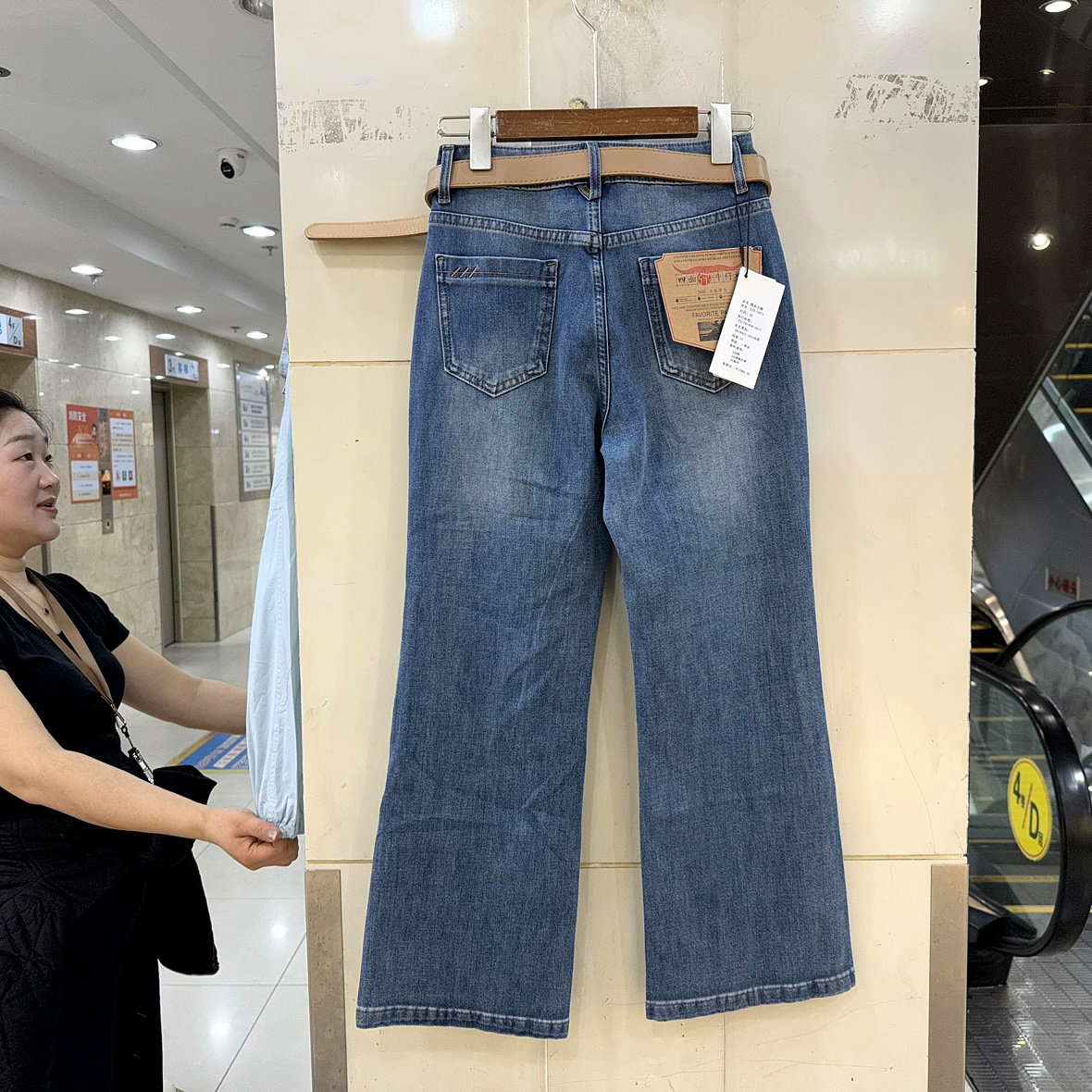 2026新款 329 欧货春装 牛仔裤 女裤 牛仔筒喇裤 3972 腰带高腰时尚