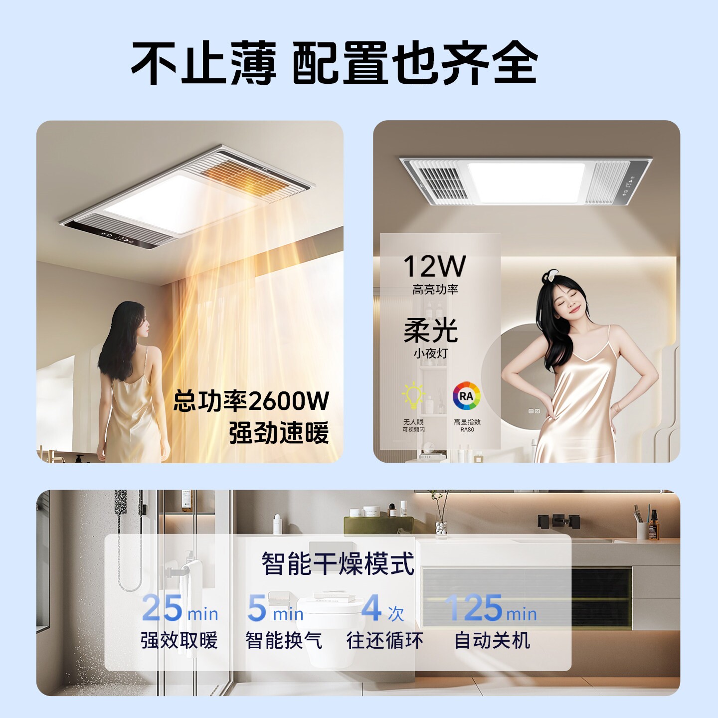 为您提供商品卫生间取 奥克斯浴霸超薄风暖集成吊顶浴室暖器灯排气扇照明一体式的详细介绍,