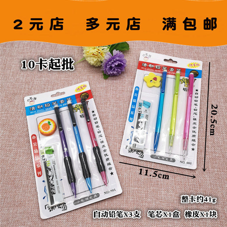 自动铅笔吸卡套装 2元 二元 百货批发厂家 10起儿童文具两元