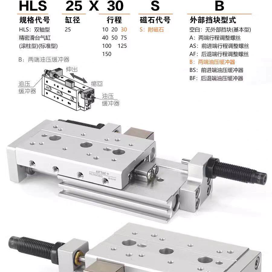 亚德客HLQ滑台气缸HLQL6X8X12X16X20X25X10X30X40X50X75SB SAS由