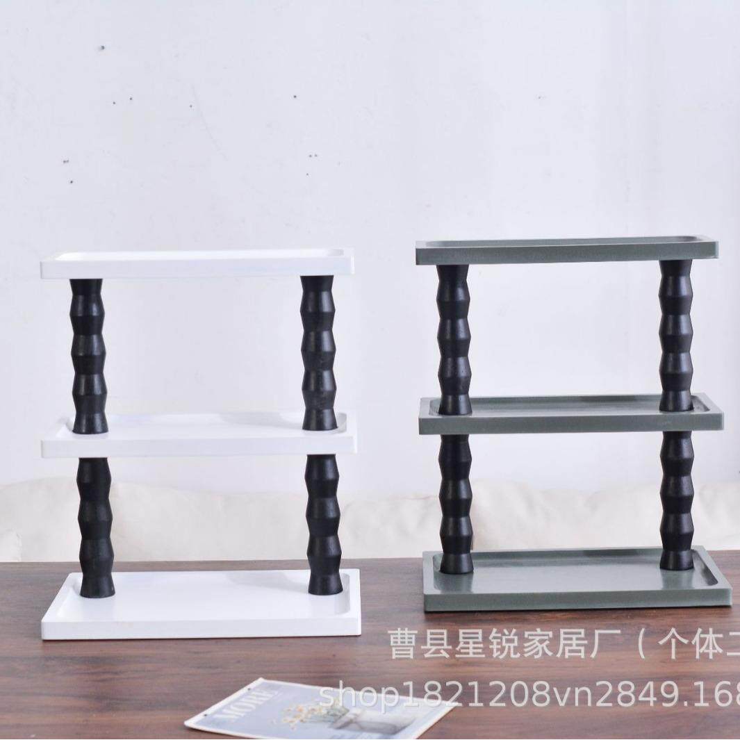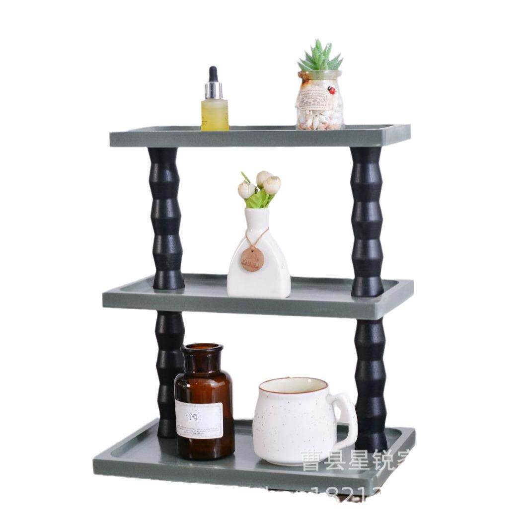 实木多层置物架家用桌面多功能双层木质收纳架实木落地置物架 欧式