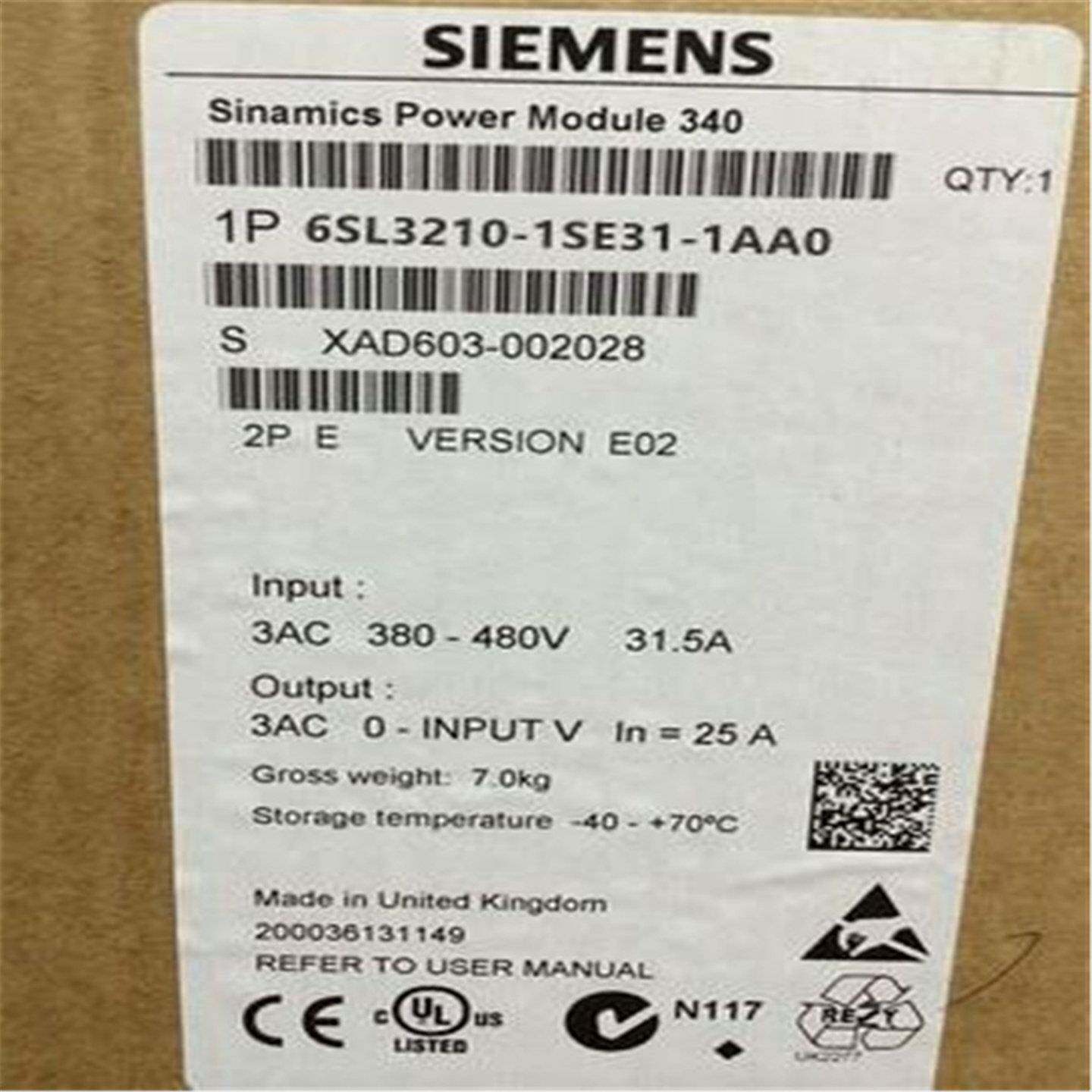 6SL3210 31变频器0 1SE14 8UA0由