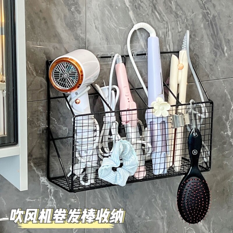 卷发棒挂篮置物架宿舍好物免打孔强力粘胶吹风机直发梳桌下收纳架
