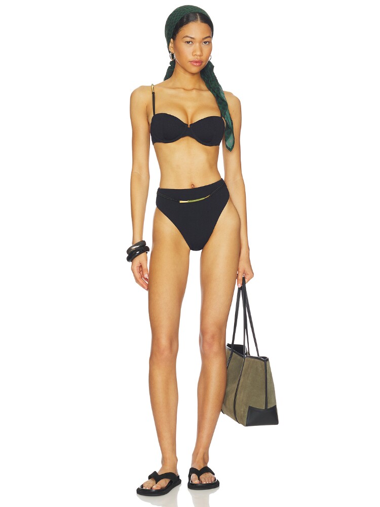新品 Vix Swimwear黑色比基尼金属扣性感高腰上装 REVOLVE 春季由