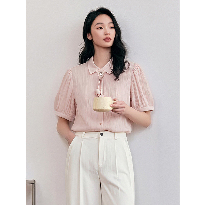 新款 PIT经典 翻领铃兰领结上衣 女2026夏季 衬衫 水波纹短袖 薄款由