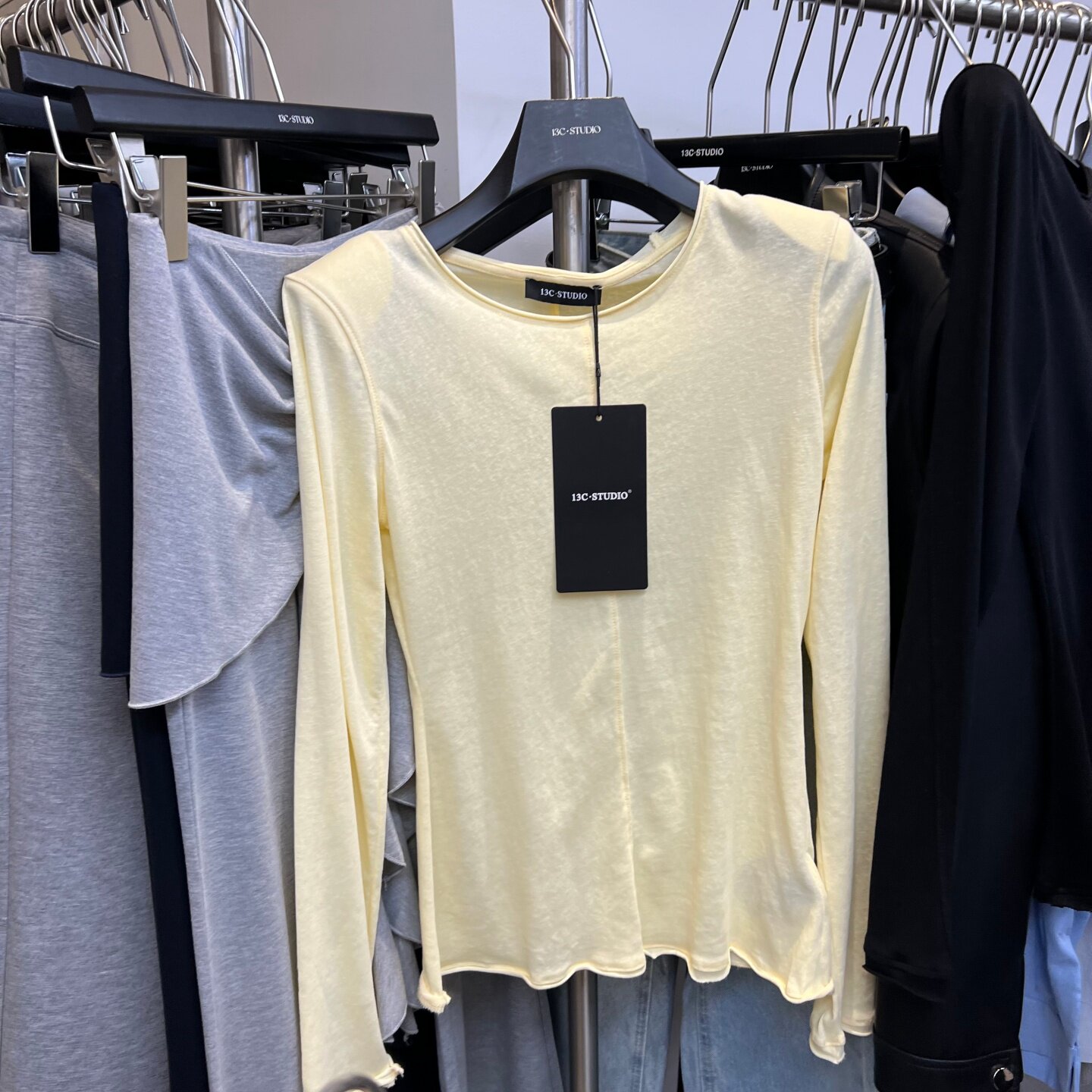13C2026春夏新款 58095 简约百搭纯色卷边设计感微透显瘦T恤女长袖由