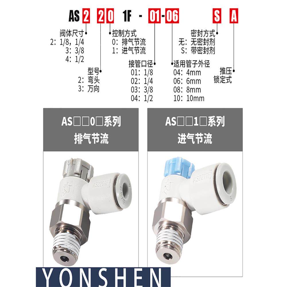 10SA节流阀 气动调速阀接头AS1201F 06A 08SA 04A 2201F由