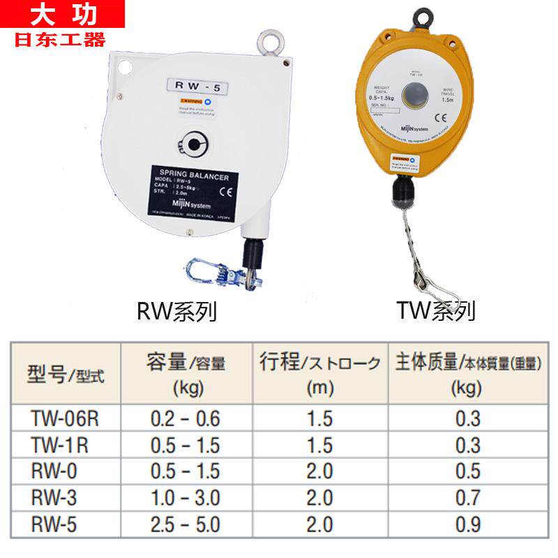 为您提供商品大功NTW 5kg 1.5 0.5 1R电批弹簧拉力平衡器RW的详细介绍,