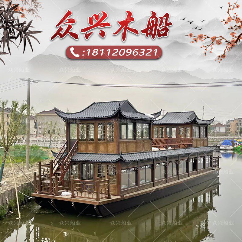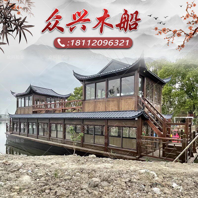 木船大型双层画舫船餐饮实木质仿古玻璃钢水N上游玩会议电动观光由