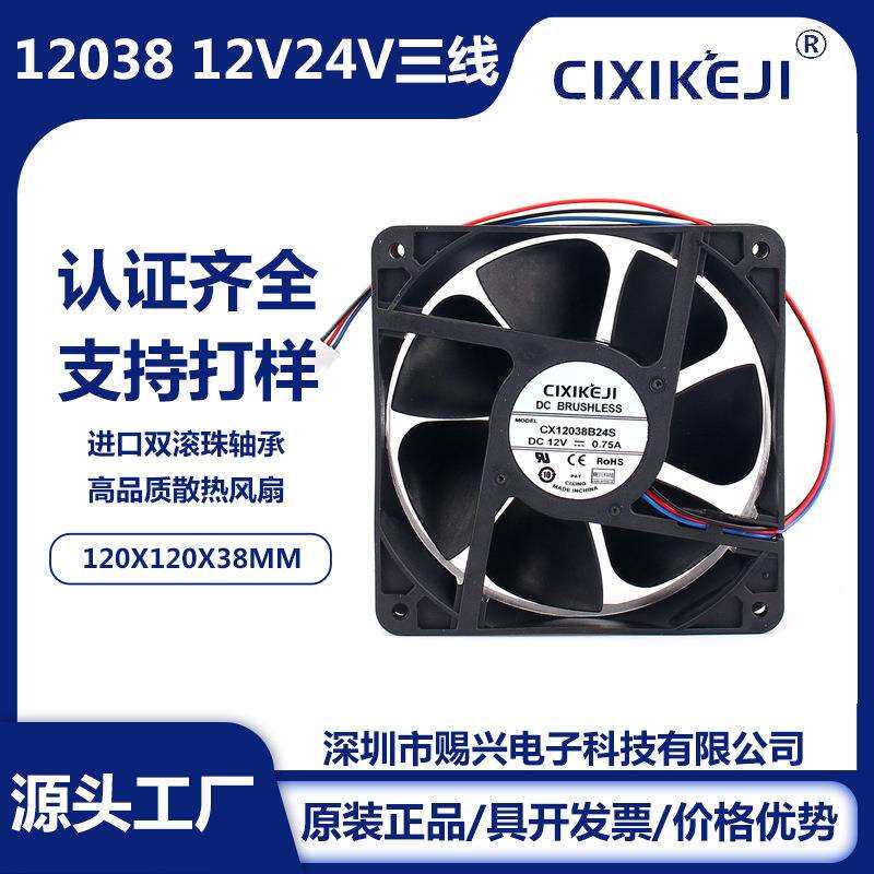 DC1203812V24V滚珠含油测速报警FG功能散热风扇12cm工业专用由