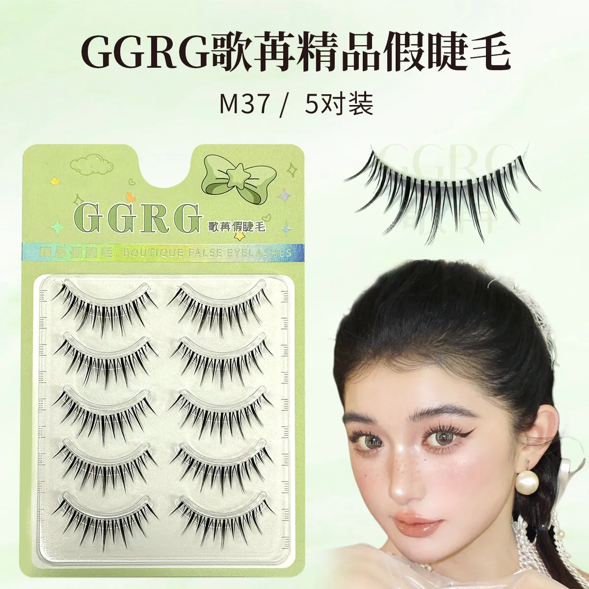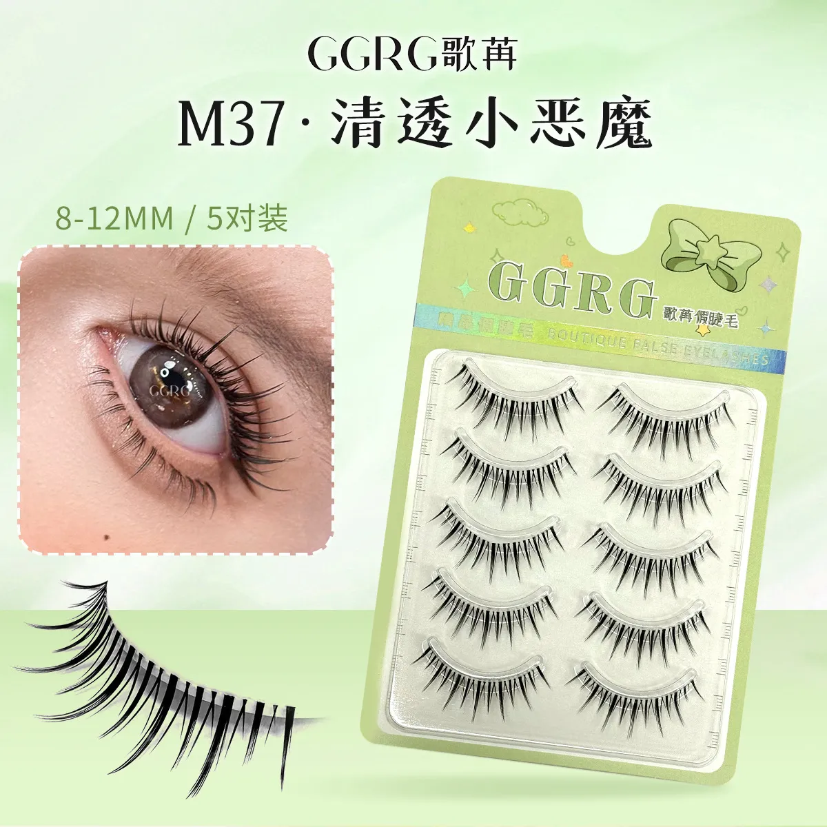 M37 睫毛仿真自 GGRG歌苒假睫毛升级小恶魔浓颜系睫毛透明梗一片式