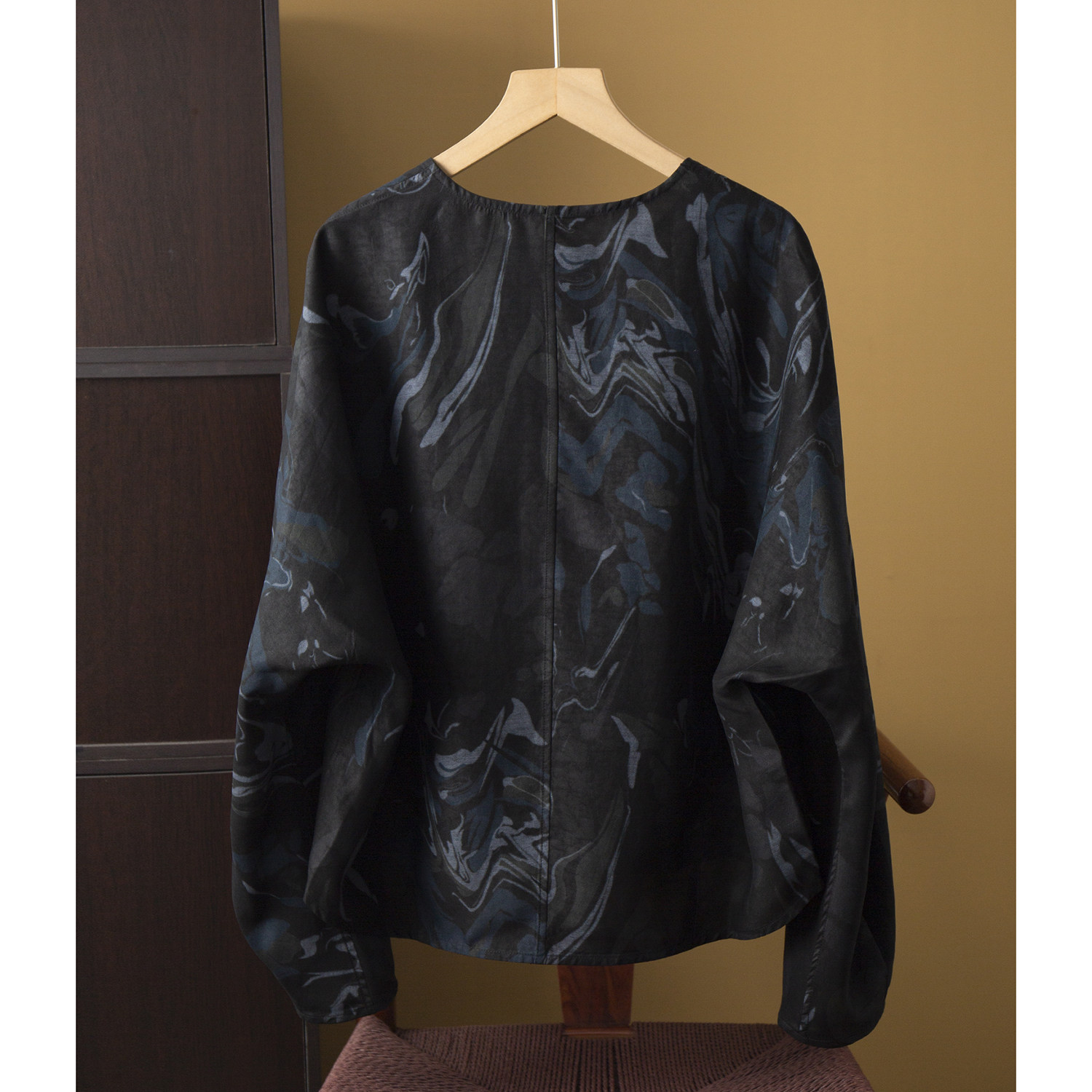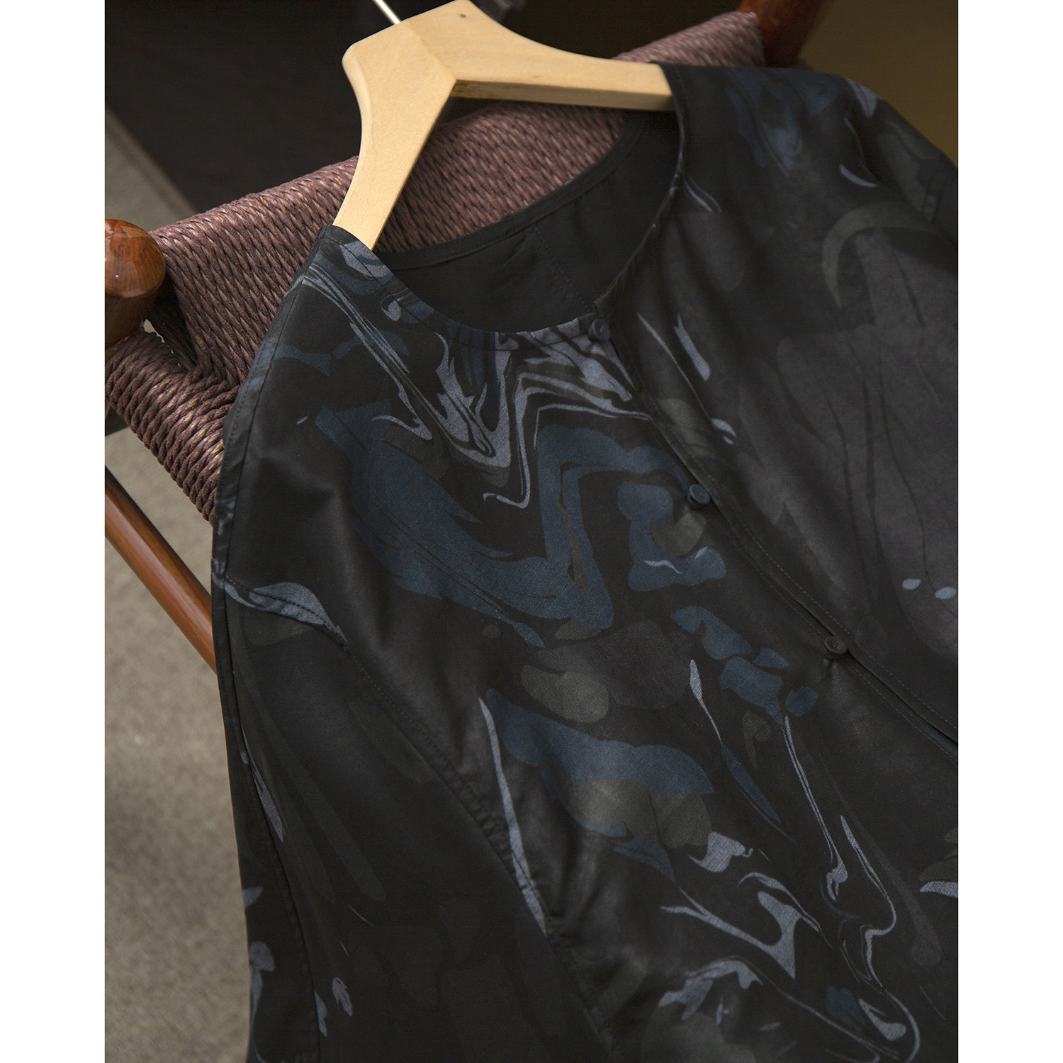 丝艺100%桑蚕丝墨池龟纹香云纱真丝印花新中式 上衣 外套女国风开衫由